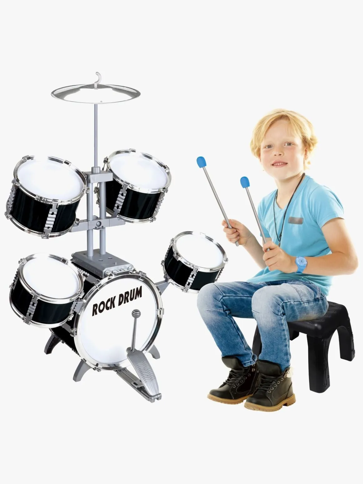 – Indeholder: 1 stortromme, 2 de store pukaer, 2 de små pukaer, 1 bækken, 1 fodpedal, 2 trommestikker, 1 skammel.
