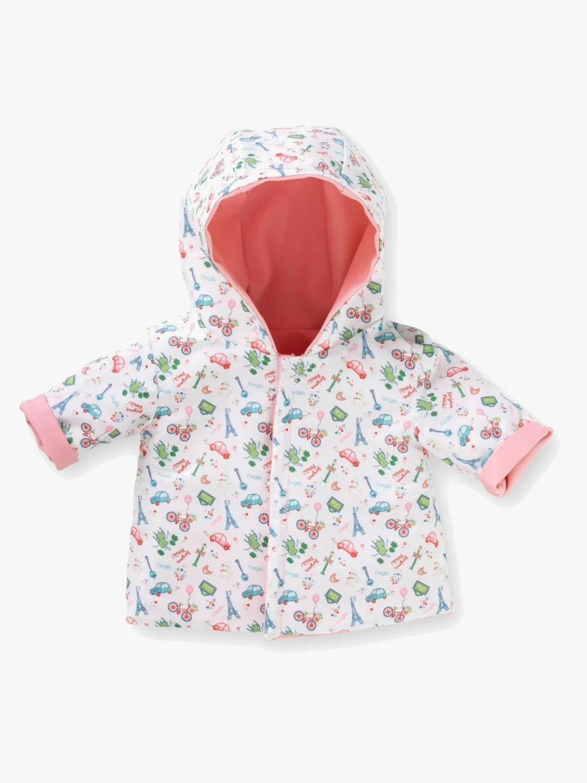 – Regnjakke med vendbart design.