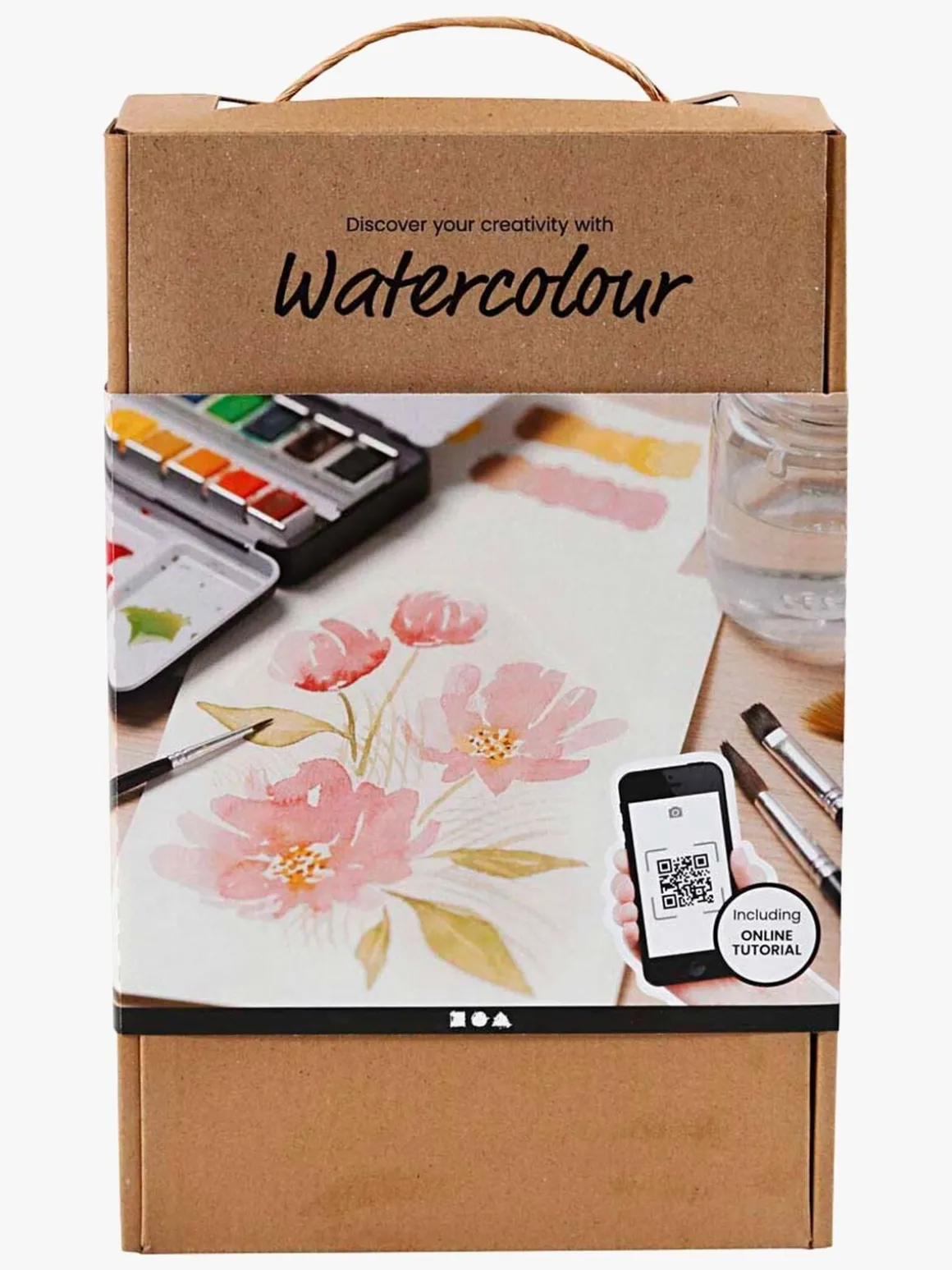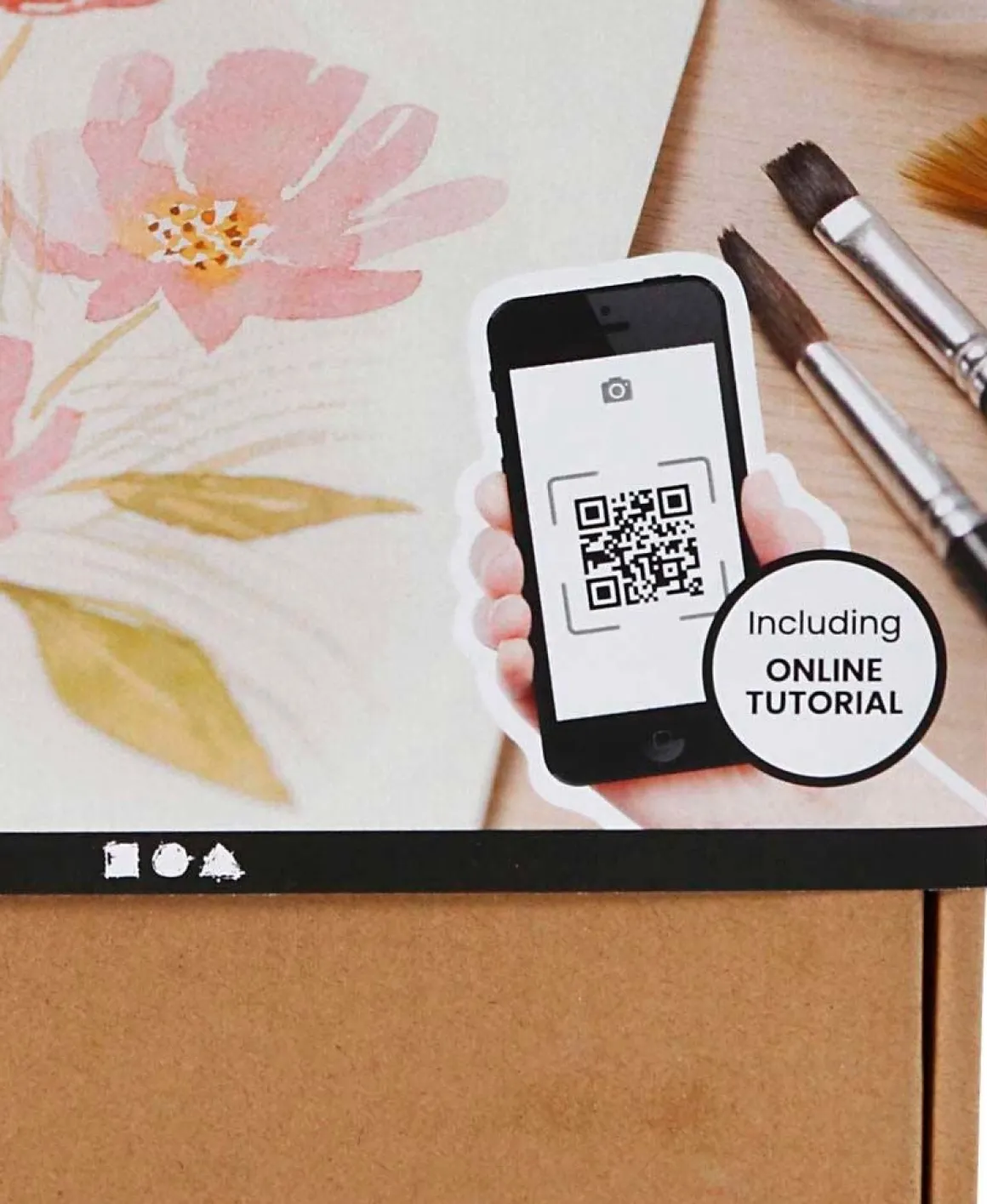 I pakken, er der også en QR-kode, som ved scanning fører dig videre til en detaljeret instruktionsvideo, der introducerer flere forskellige akvarelmalingsteknikker. Det perfekte sæt til nybegynderen!
