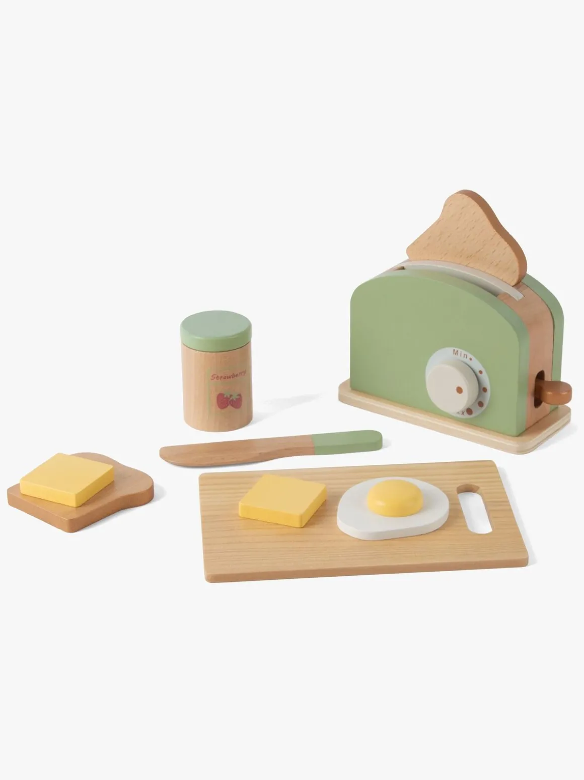 – Indeholder: 1 brødrister i træ, 2 brødskiver, 1 trækniv, 1 skærebræt, 1 sæt med toppings.