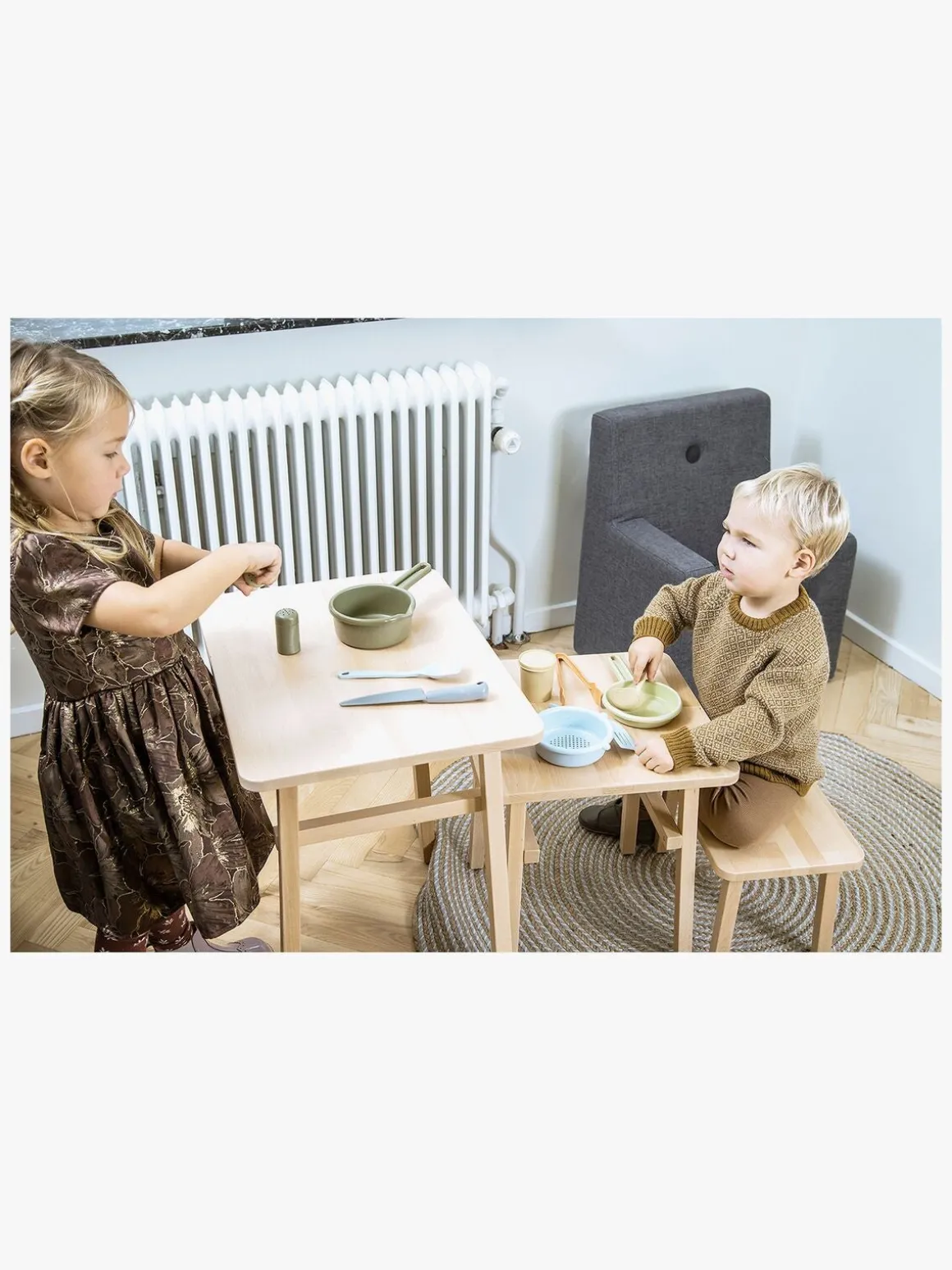 Bagesættet er danskproduceret fra Dantoy og fremstillet af bioplastik, der er lavet af sukkerrør. Dette gør produktet 100 % genanvendeligt. Sættet består af 12 dele og tåler opvaskemaskine.