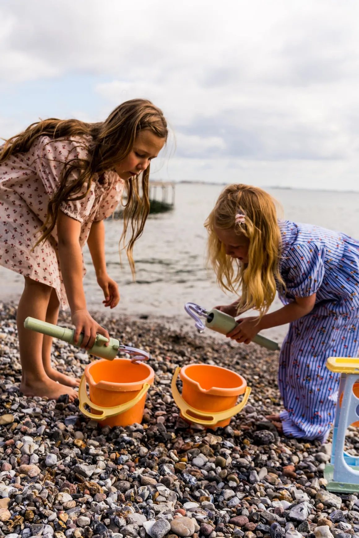 – Hæld vand eller sand i tragten for at få hjulet til at snurre!