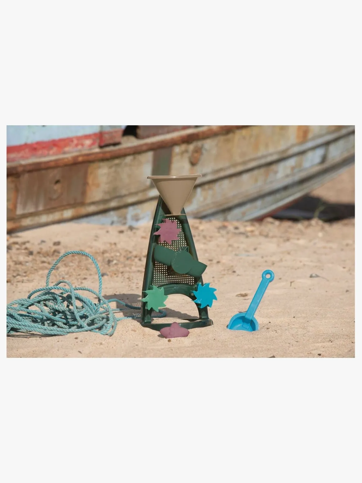 – Hæld vand eller sand i tragten for at få hjulet til at snurre!