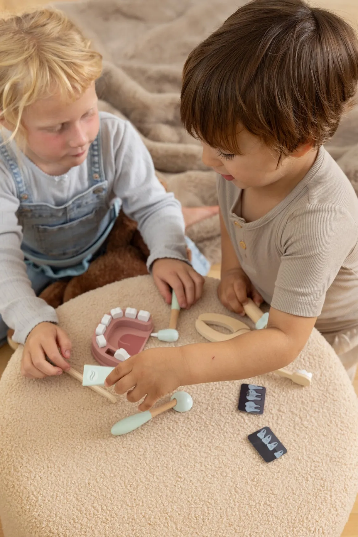 – Indeholder: 1 tandlægesæt med en masse forskelligt tilbehør perfekt til at lære om, hvad en tandlæge gør, og hvor vigtigt tandhygiejne og mundsundhed er!
