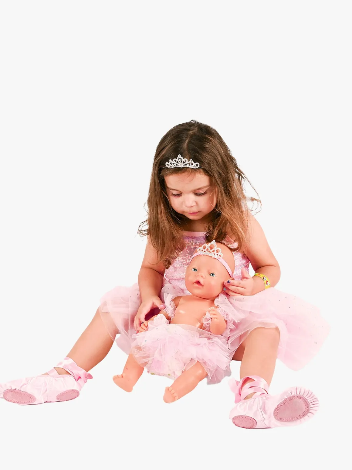 – Indeholder: 1 kjole, 1 par ballerinasko, 1 ærmedetalje, 1 dukke med en dukketiara og en nederdel.