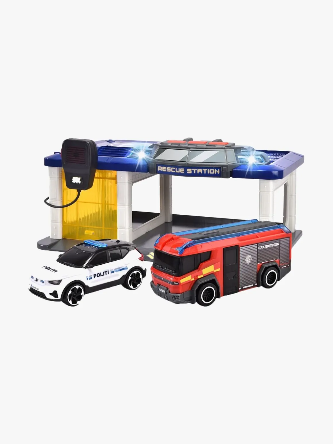 – Indeholder: 1 redningsstation, 1 politibil, 1 brandbil.