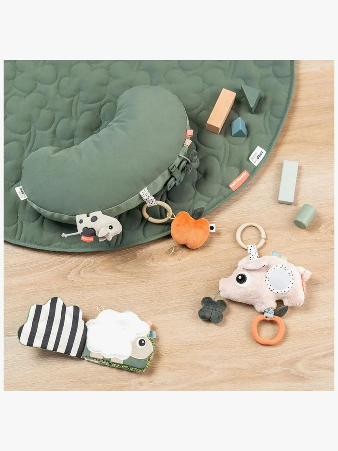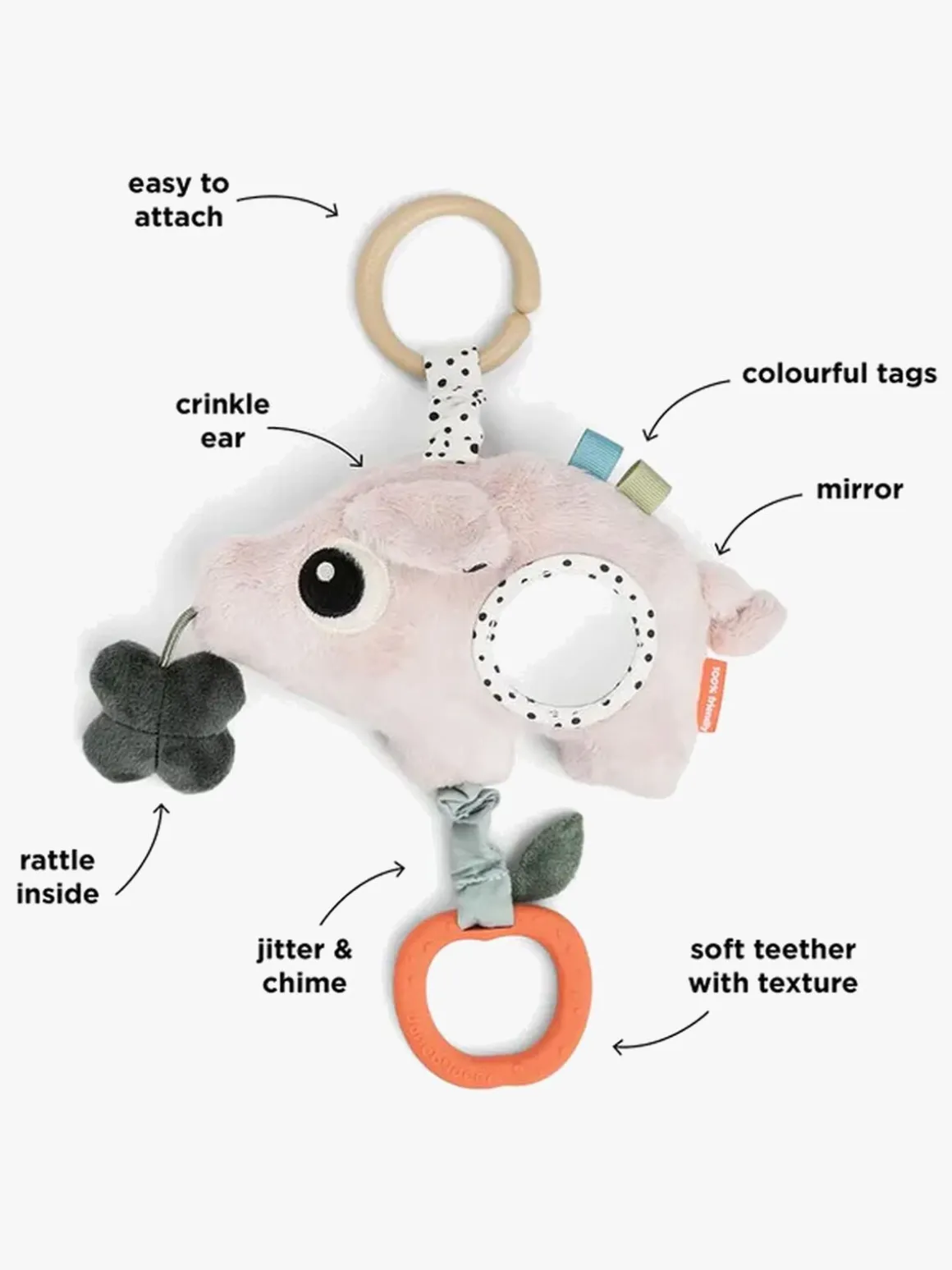 – Sjove farver og et spejl til visuel stimulering.