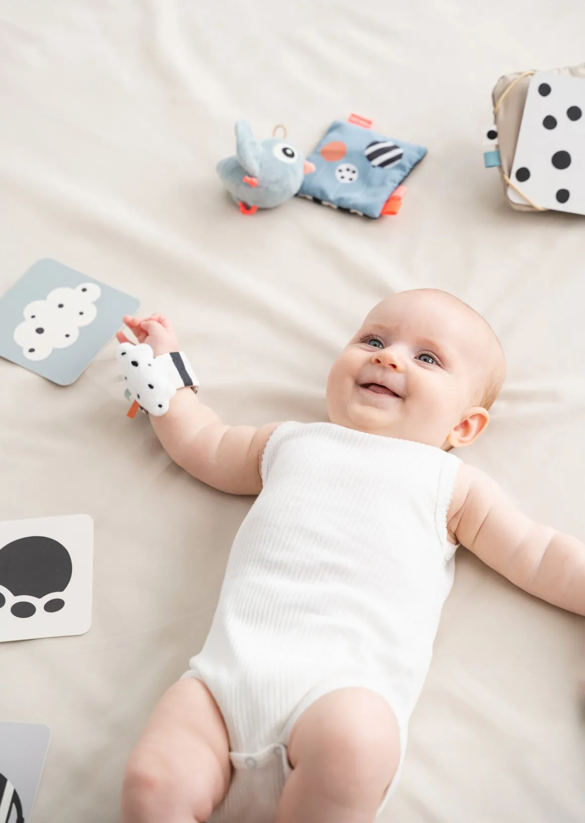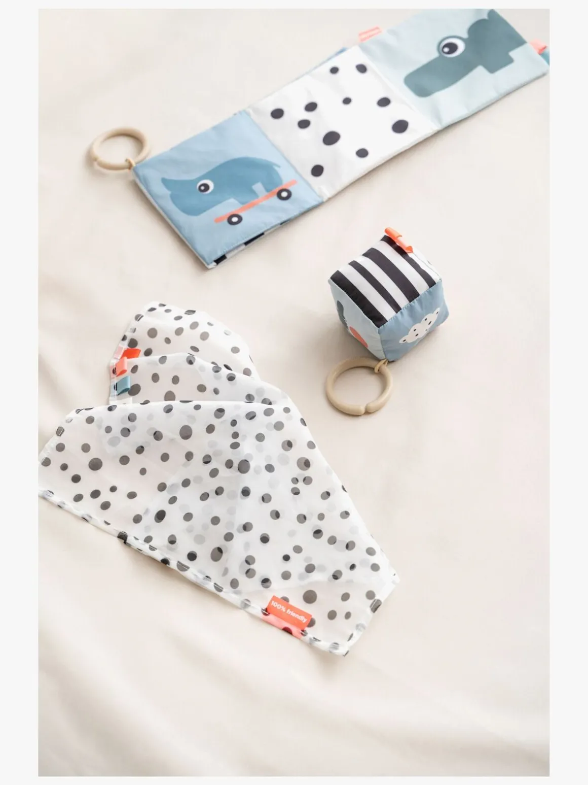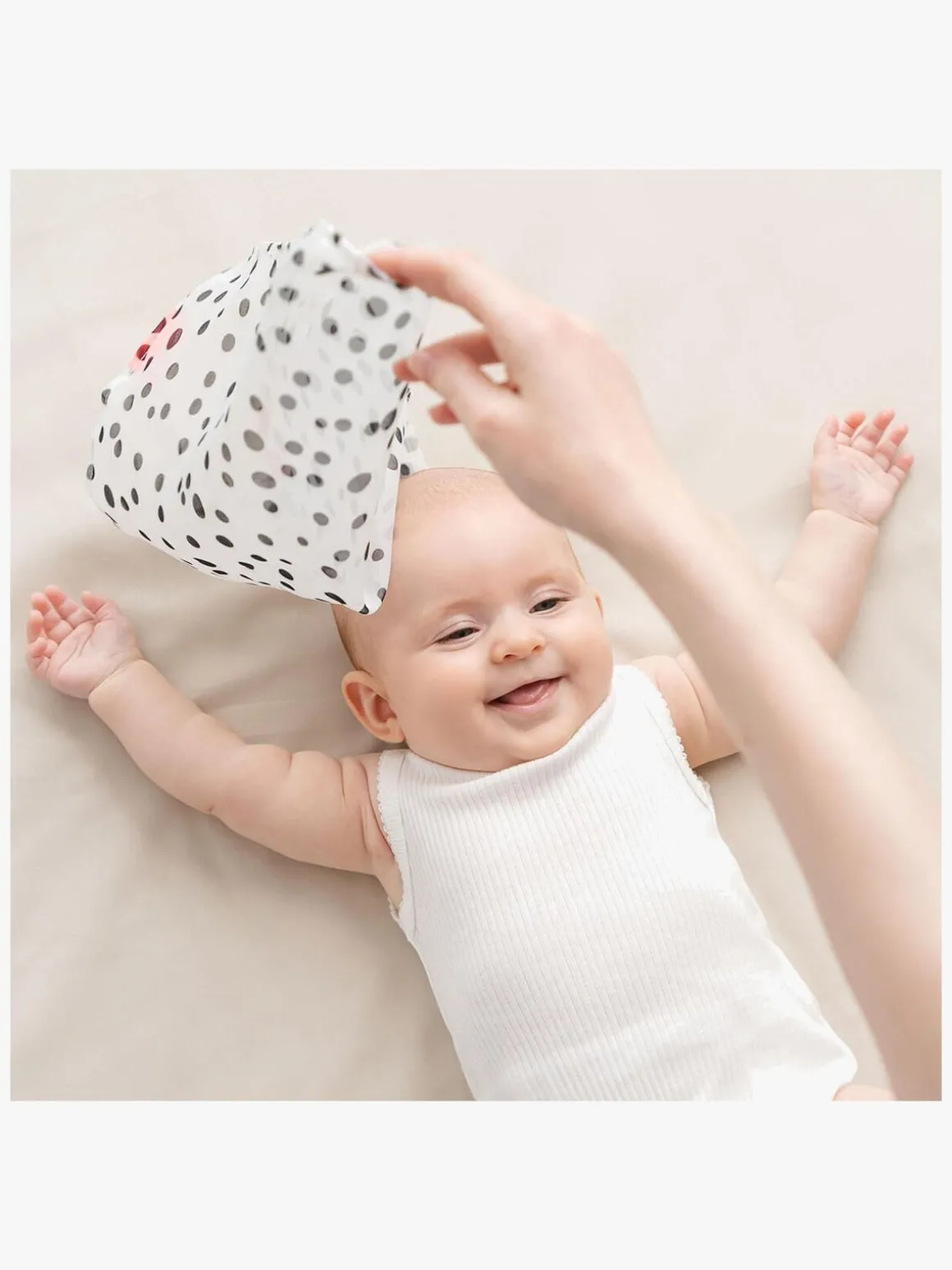 – Tørklædet er ideelt til visuel stimulering, tit-tit eller til at fange din babys opmærksomhed.