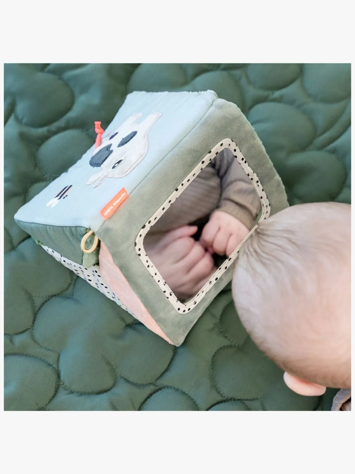 – Sjove farver og et spejl til visuel stimulering.