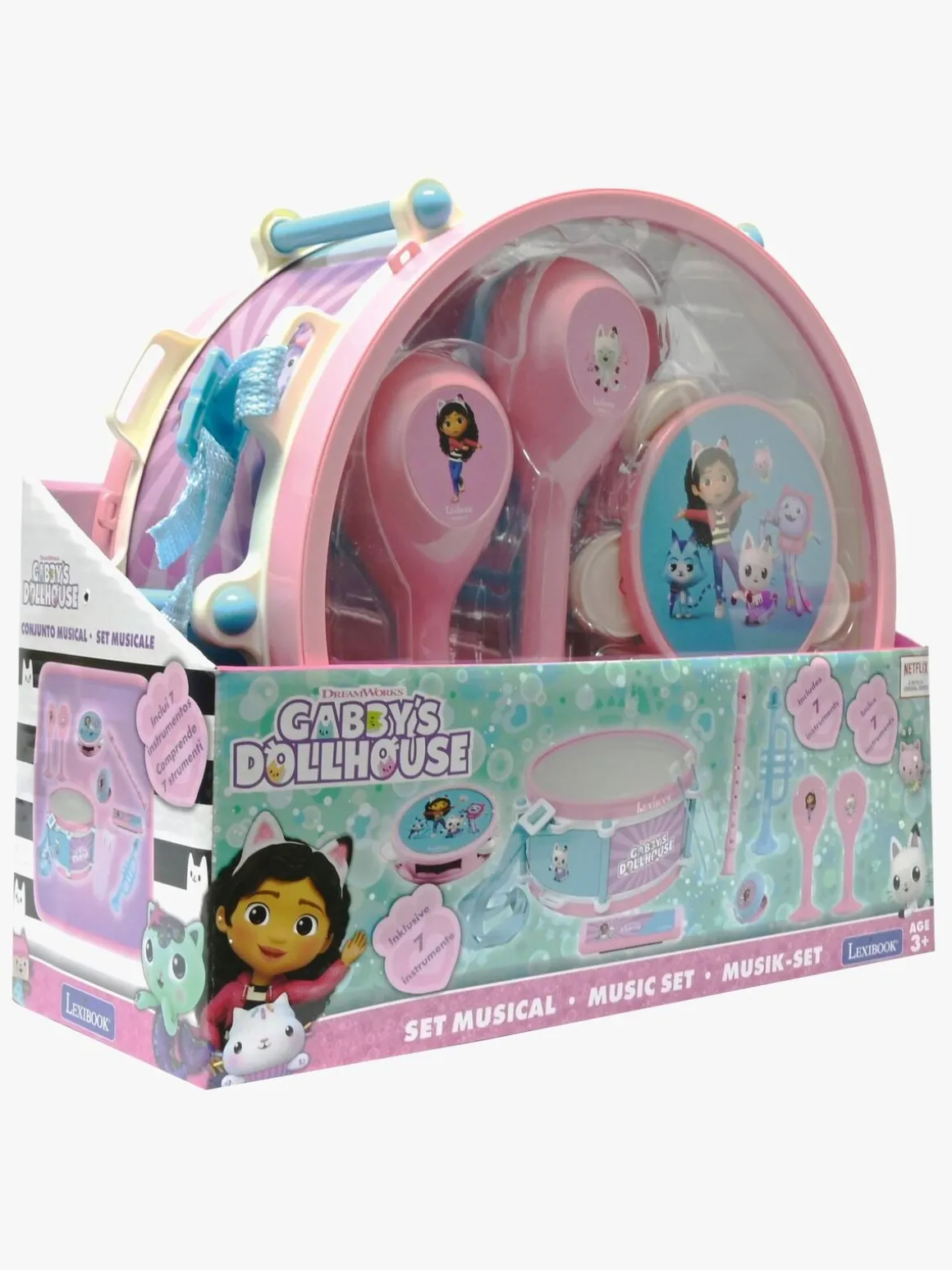 – Indeholder: 1 tromme, 2 maracaer, 1 kastagnetter, 1 tamburin, 1 mundharmonika, 1 blokfløjte, 1 trompet.