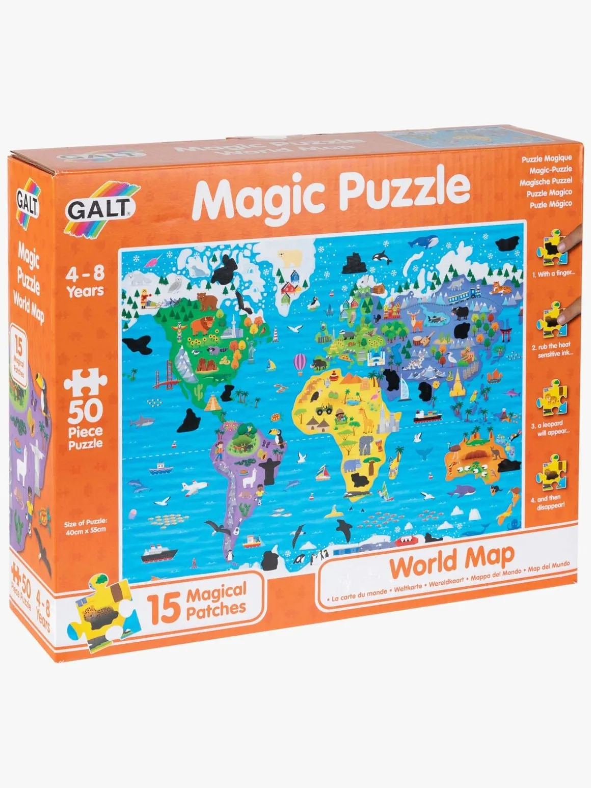 – 15 magiske brikker med skjulte motiver, man kan få frem ved at gnide på dem.