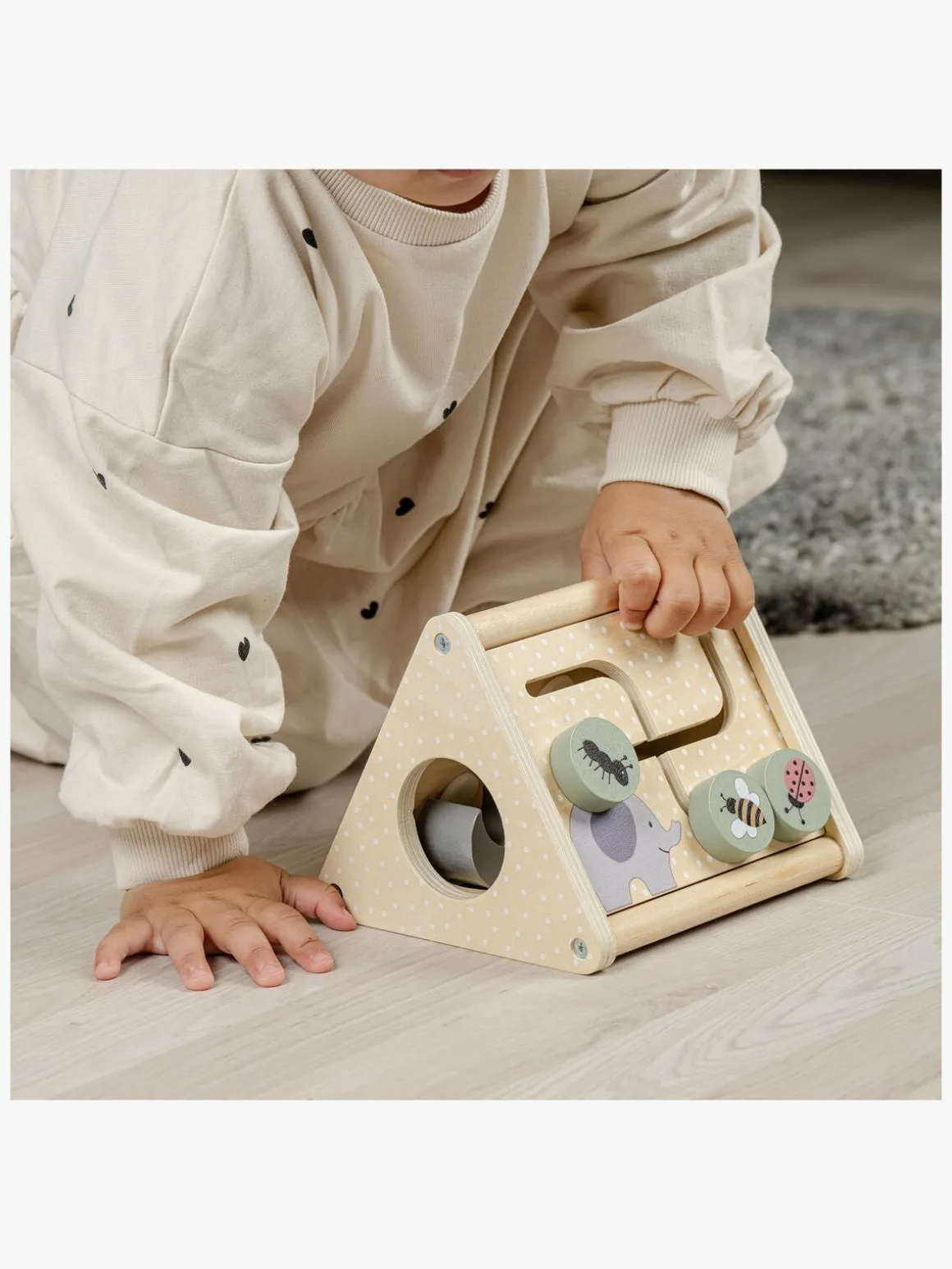– Indeholder: 1 aktivitetspose med reb, 2 puslespil, 1 træklegetøj, 1 aktivitetskasse.
