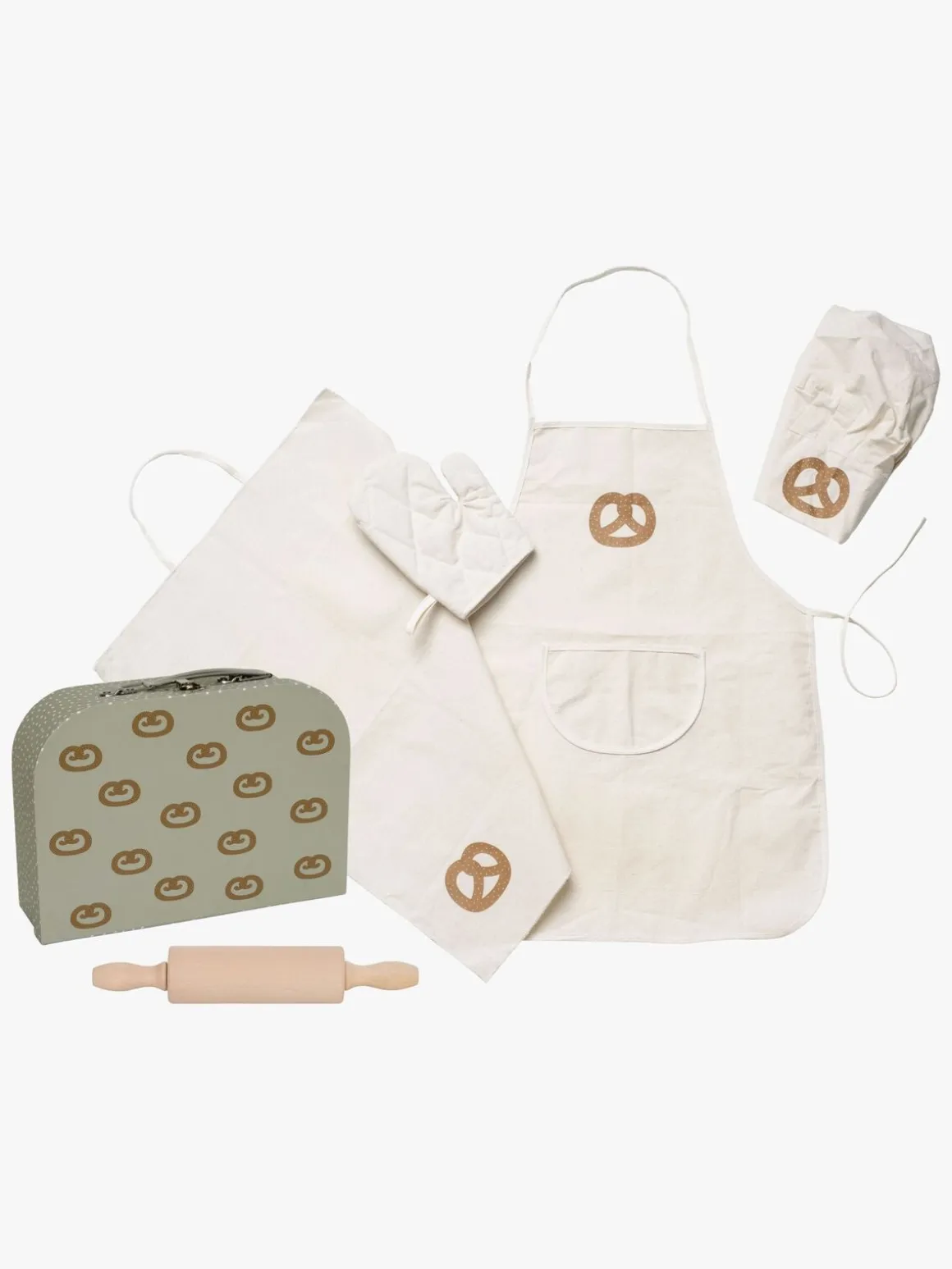 – Indeholder: 1 forklæde, 1 kokkehue, 1 ovnhandske, 1 kagerulle, 1 taske.