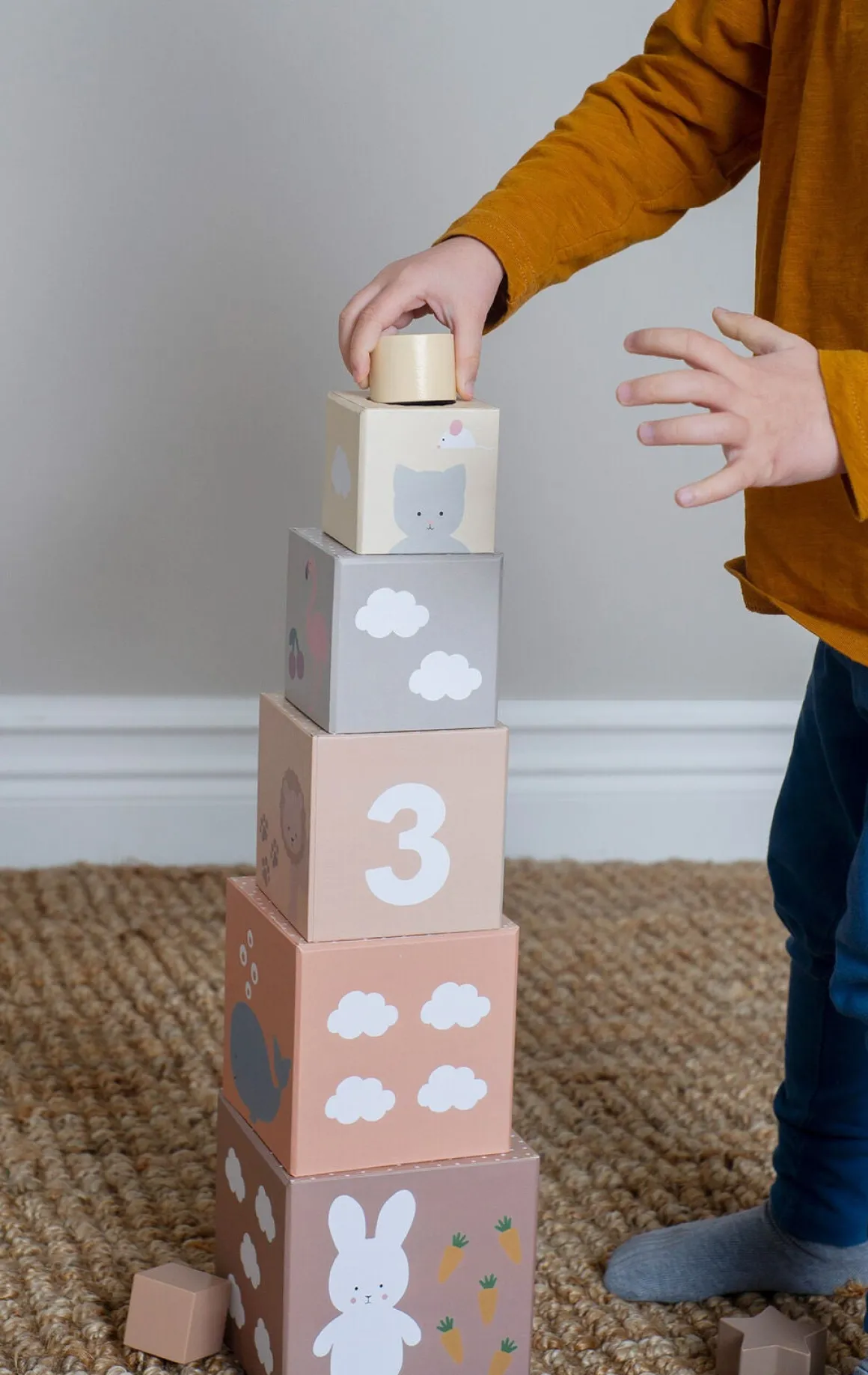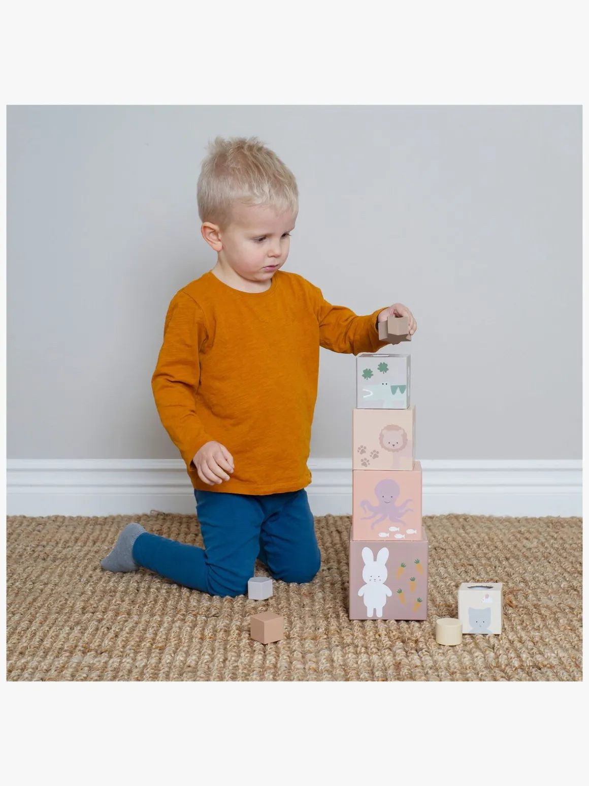 – 5 stabelbare klodser med søde dyremotiver.