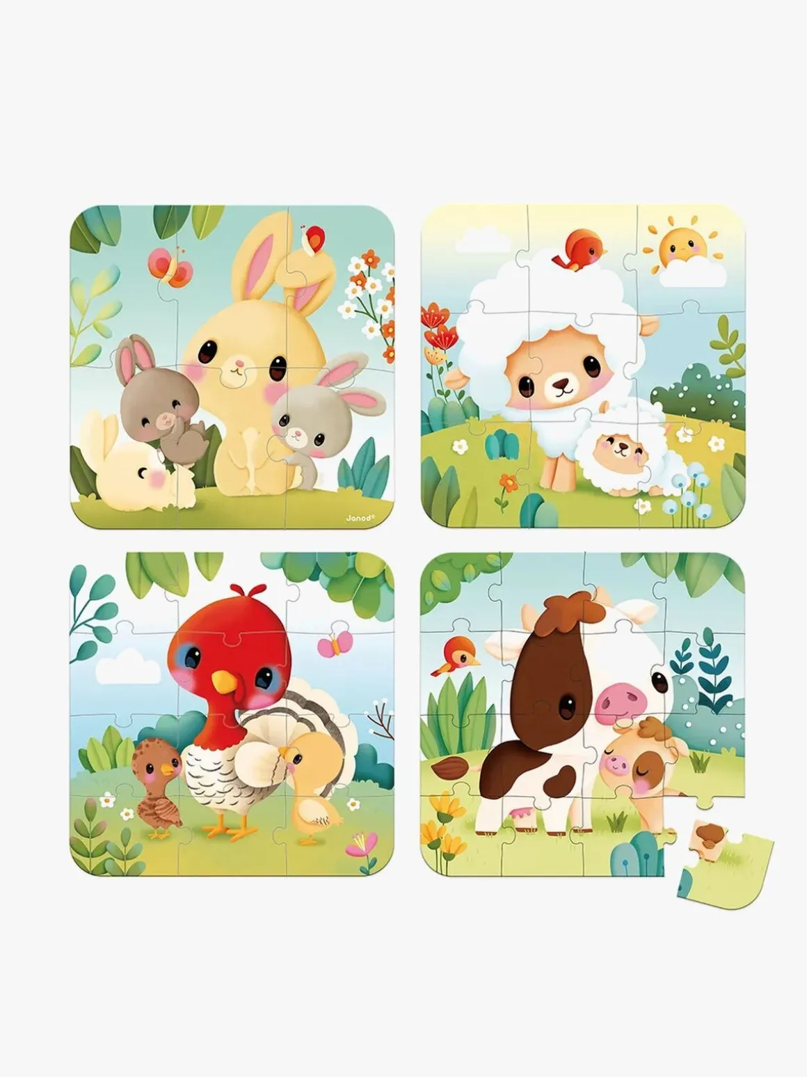 – 4 puslespil, der hhv. består af 6, 9, 12 og 16 brikker.
