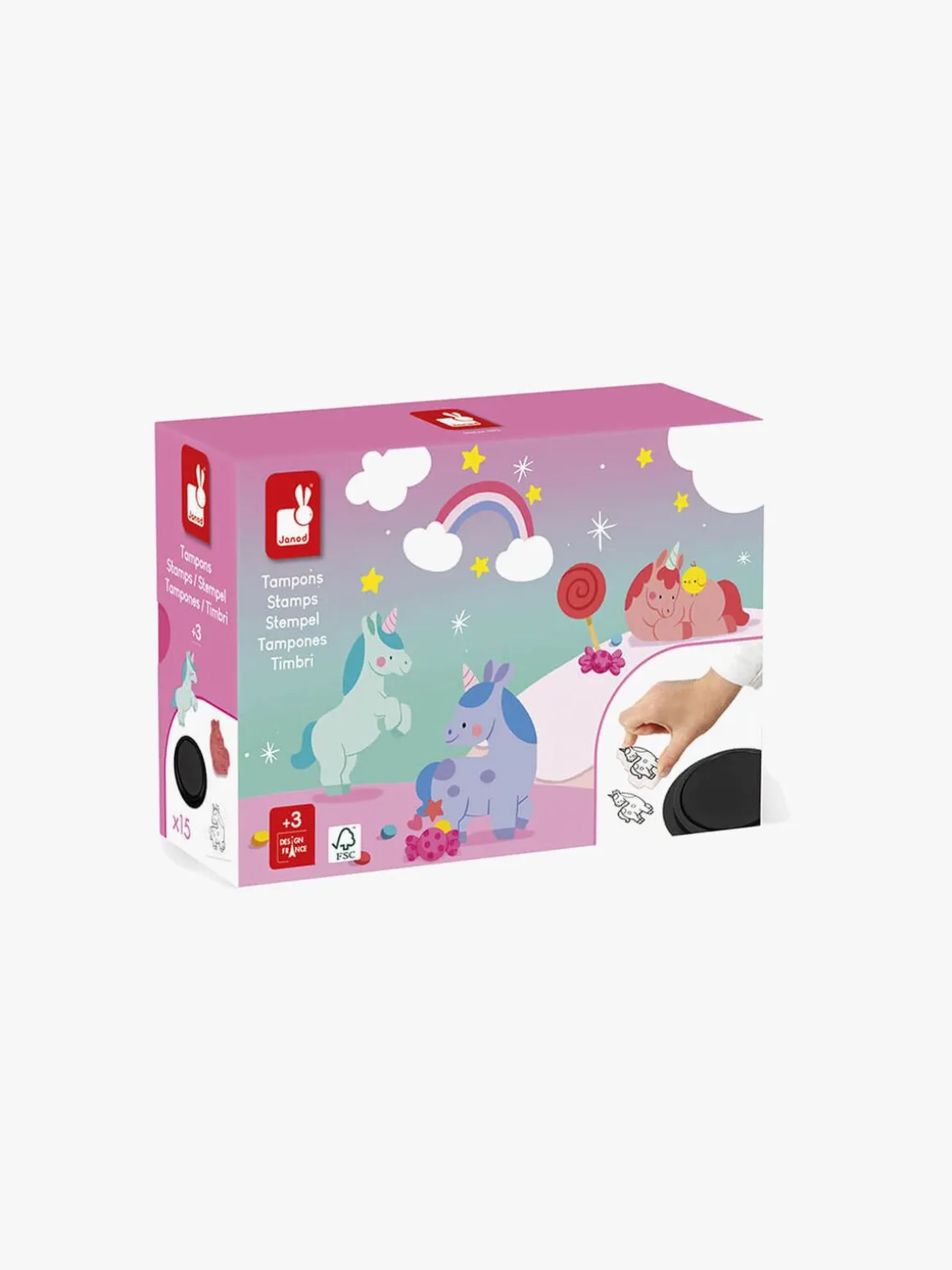 – Indeholder: 15 stempler, 1 blækpude.