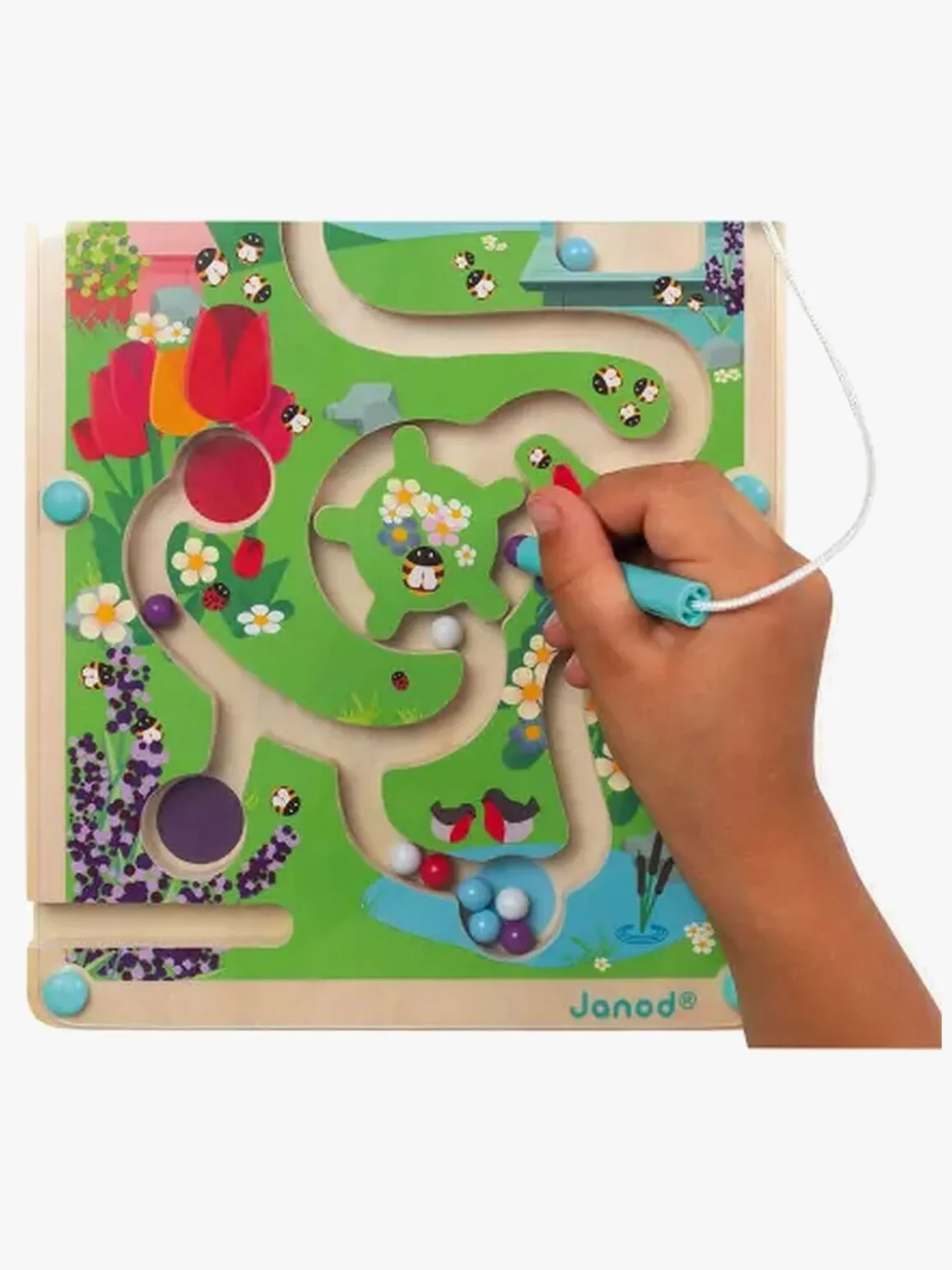– Kryds labyrinten, og flyt de 12 farvede kugler til deres rigtige pladser.