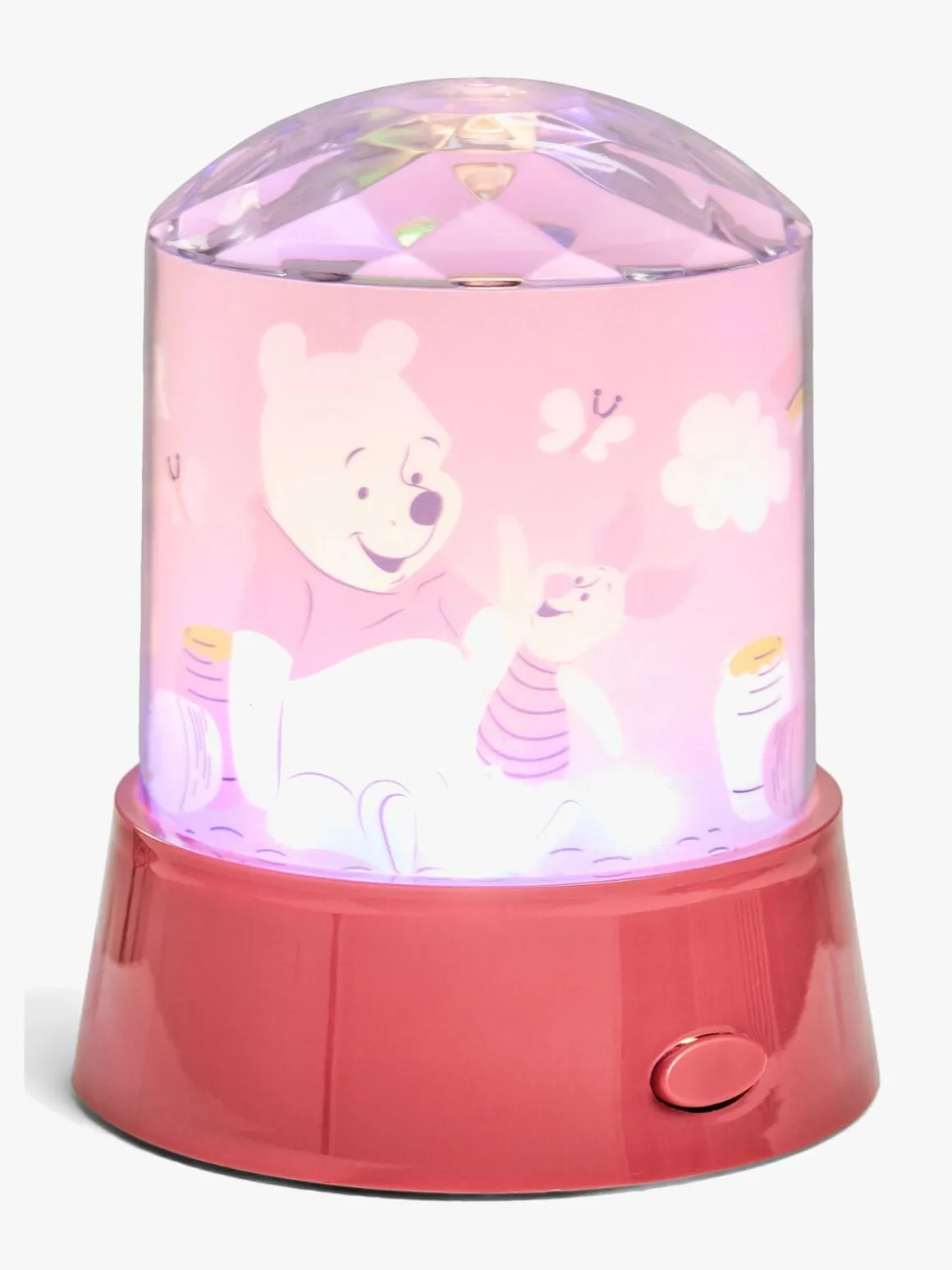 I dette sæt får du også farverig, batteridrevet LED-projektor, designet med inspiration fra den populære historie om Peter Plys. Projektoren lyser omgivelserne op med figurer i skiftende farver. En rigtig fin indretningsdetalje i børneværelset, som kan give lidt ekstra lys i de mørke timer.