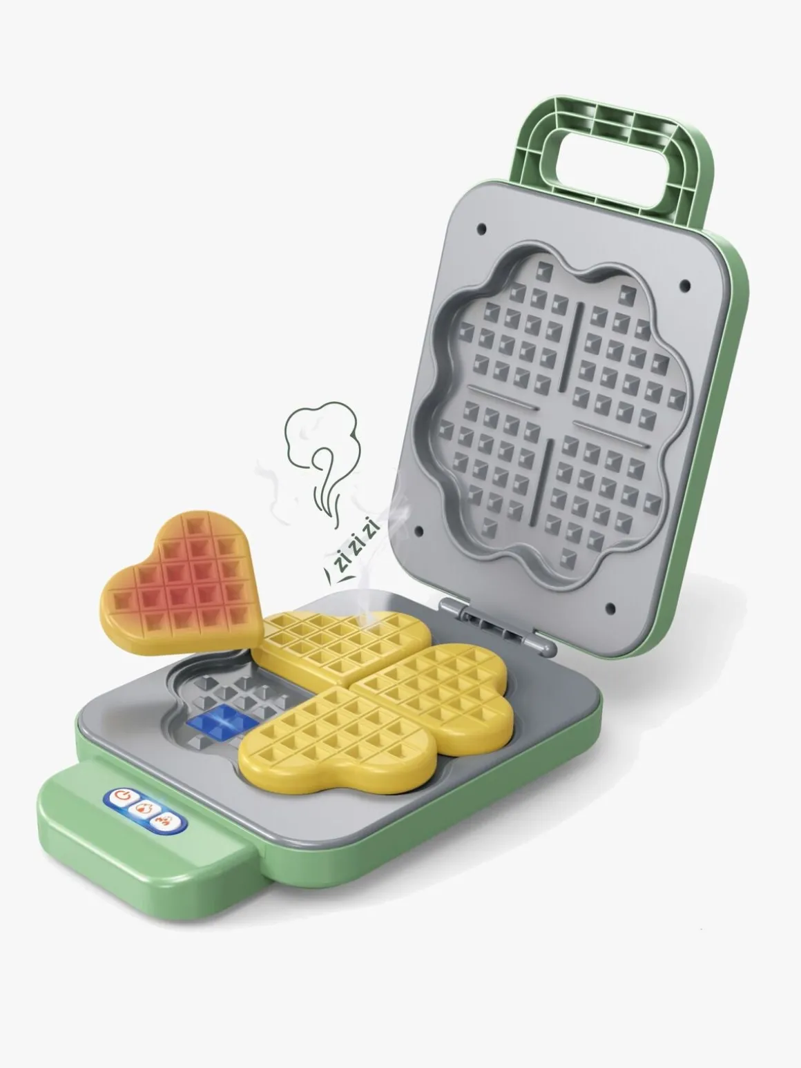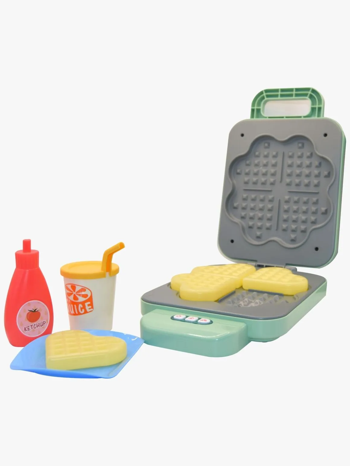 – Indeholder: 1 vaffeljern, 1 vaffel, 1 tallerken, 1 juicekop, 1 marmeladeglas.