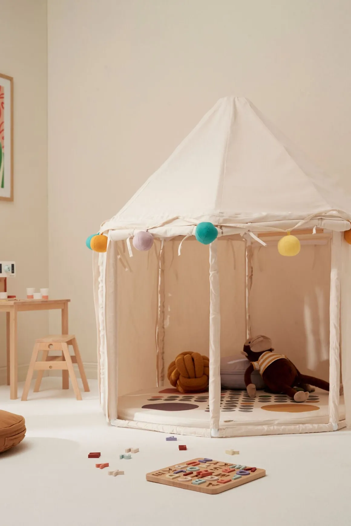 – Farverigt design.