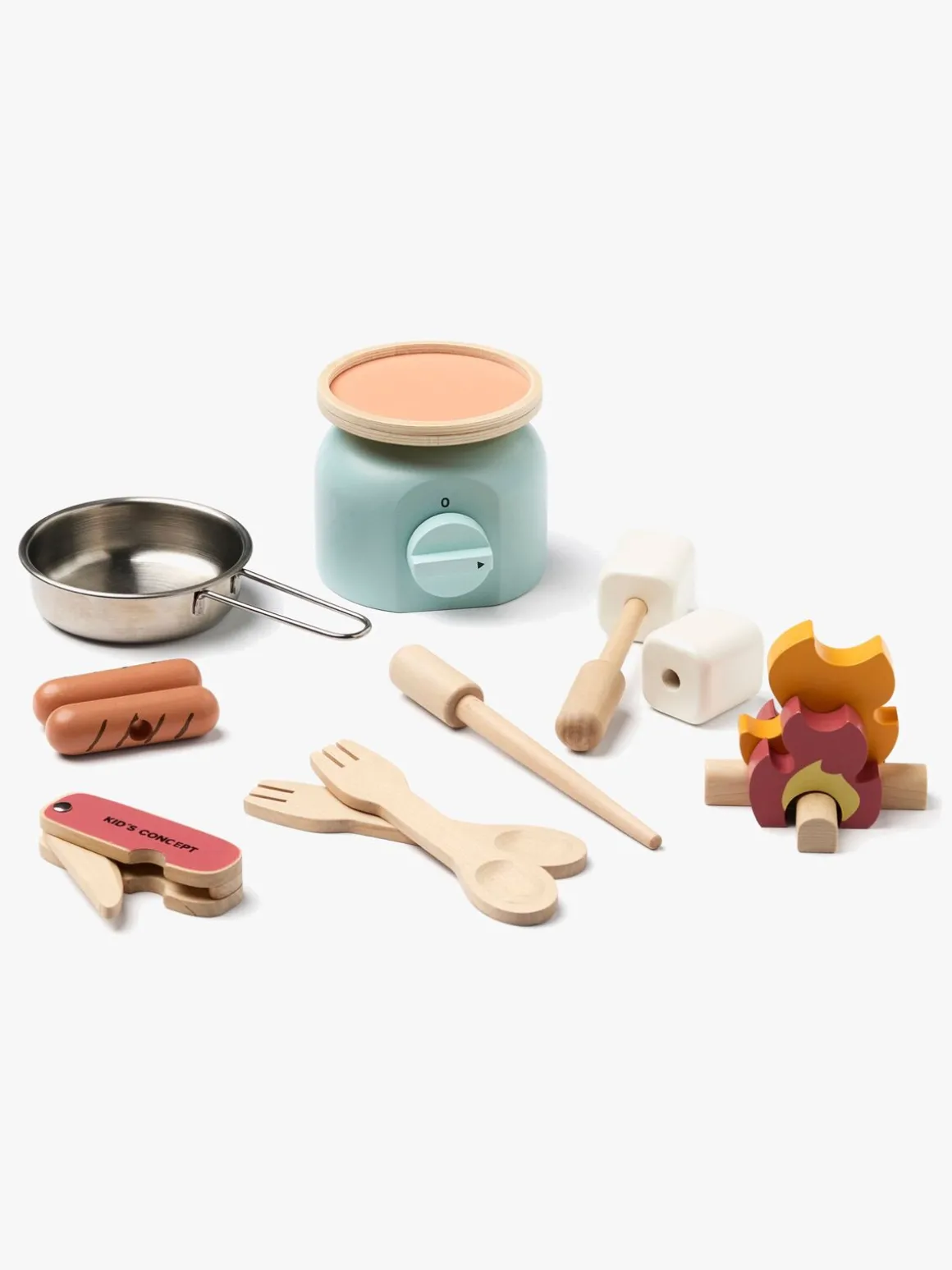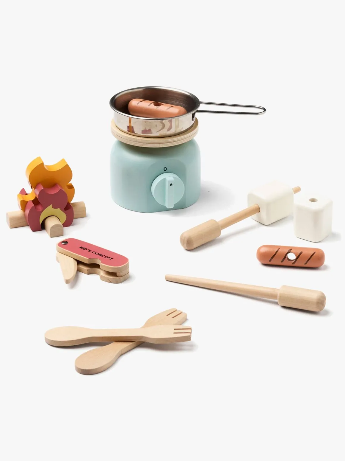 – Indeholder: 1 gaskomfur, 1 stegepande, 1 ildsted, 2 grillpinde, 2 skumfiduser, 2 hotdogs, 2 skegafler, 1 trækniv.