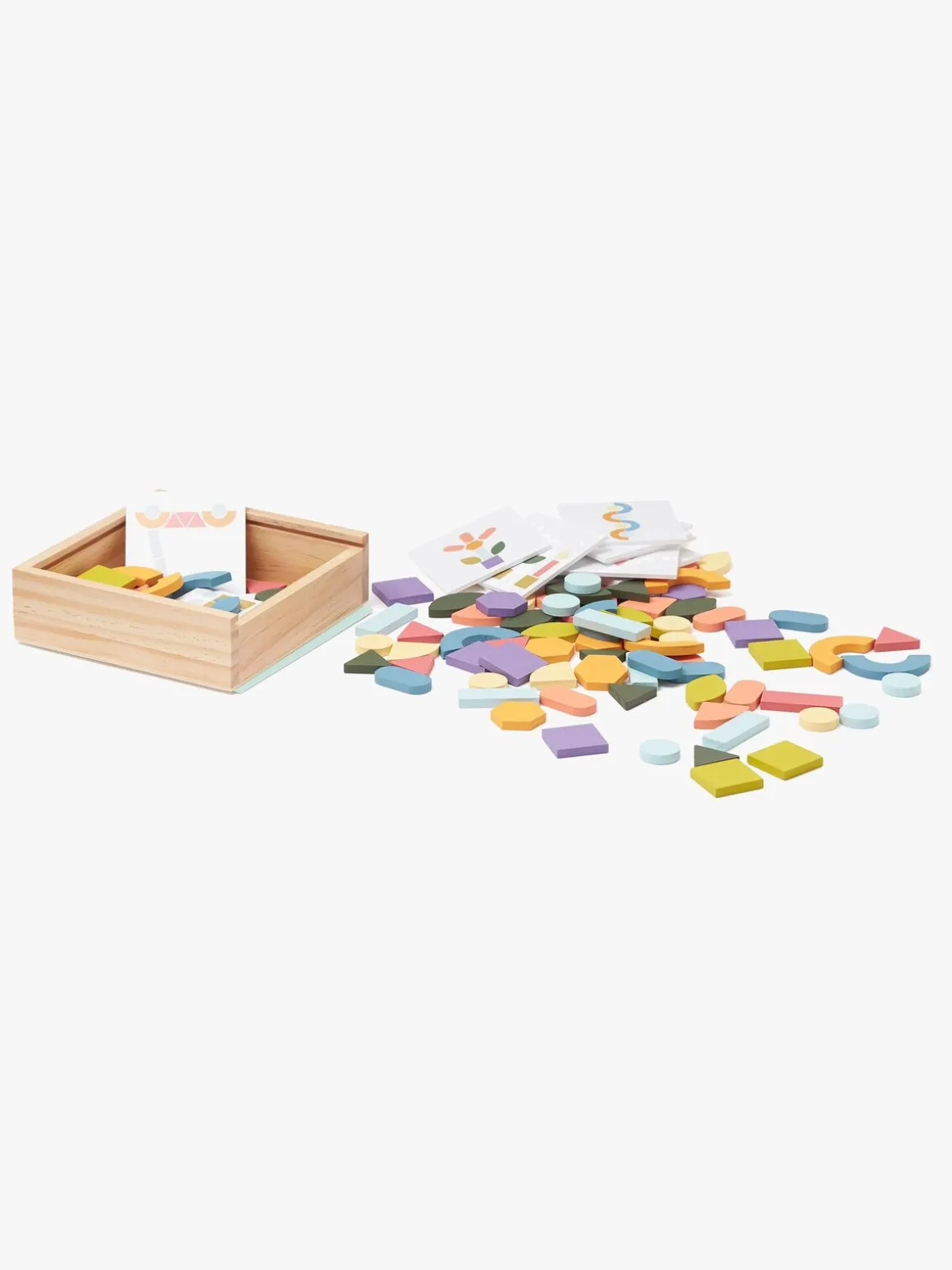 – Indeholder 96 forskelligformede træbrikker og 15 kort.