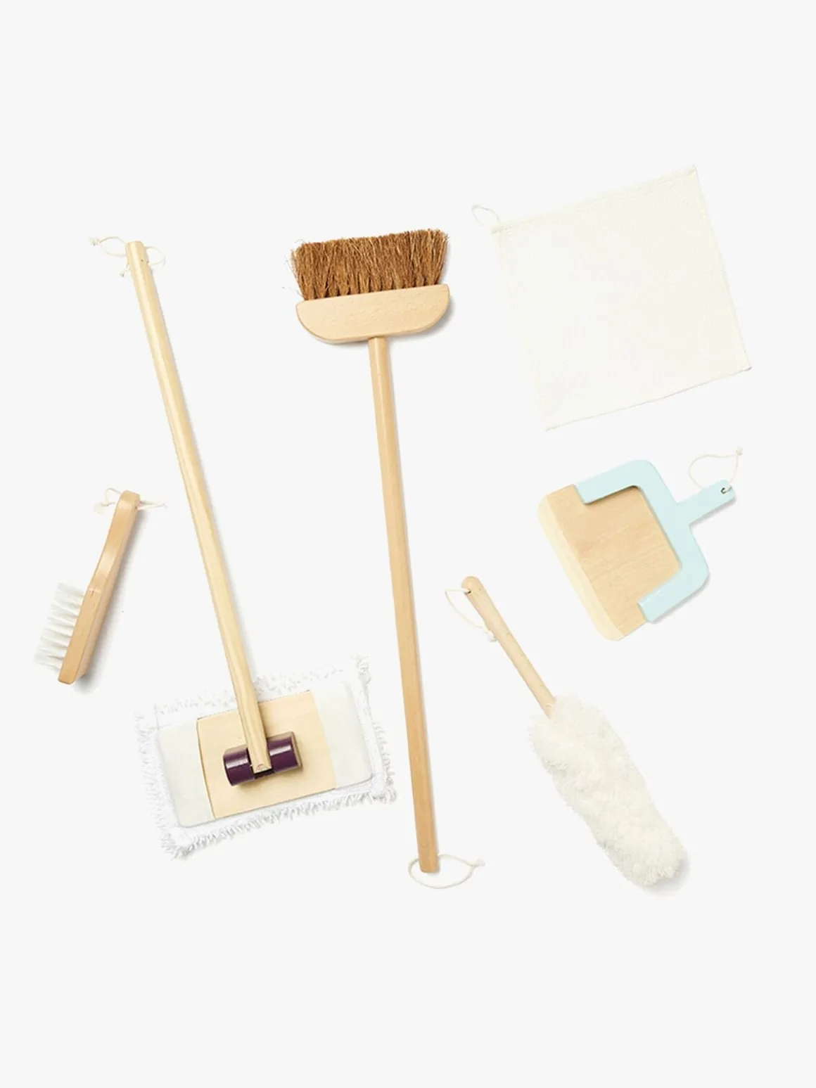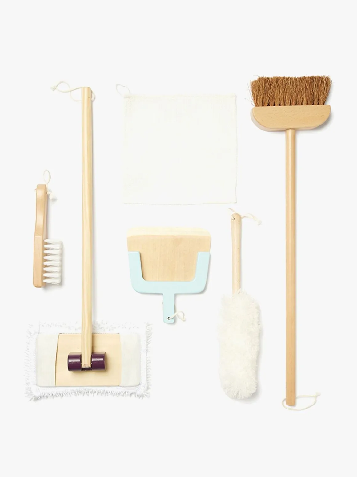 – Indeholder: 1 moppe, 1 fejekost, 1 børste, 1 fejebakke, 1 støvkost, 1 håndklæde, 1 opbevaringsstativ.