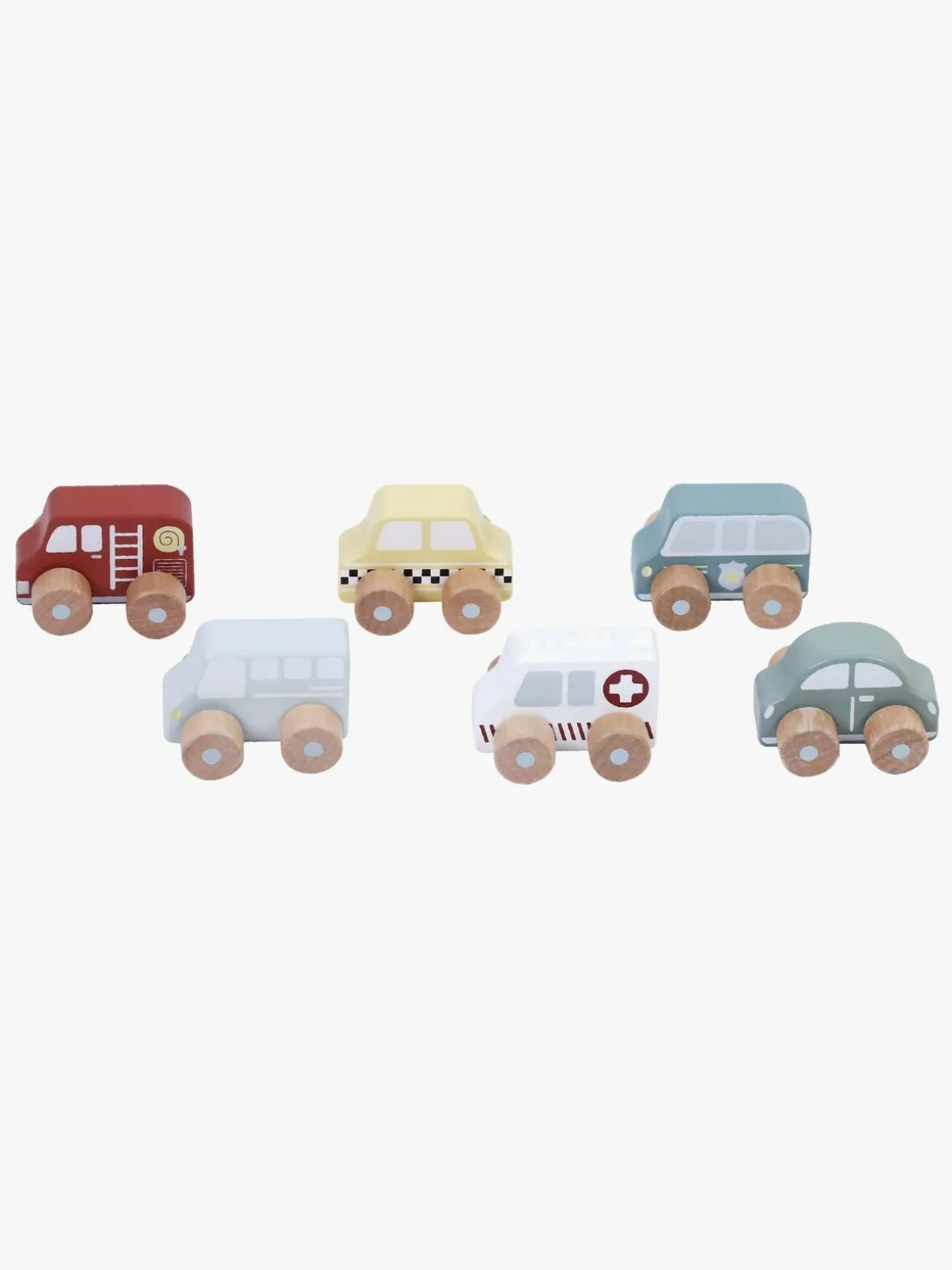 – Indeholder: en brandbil, en ambulance, en politibil, en taxa, en skolebus og en personbil.