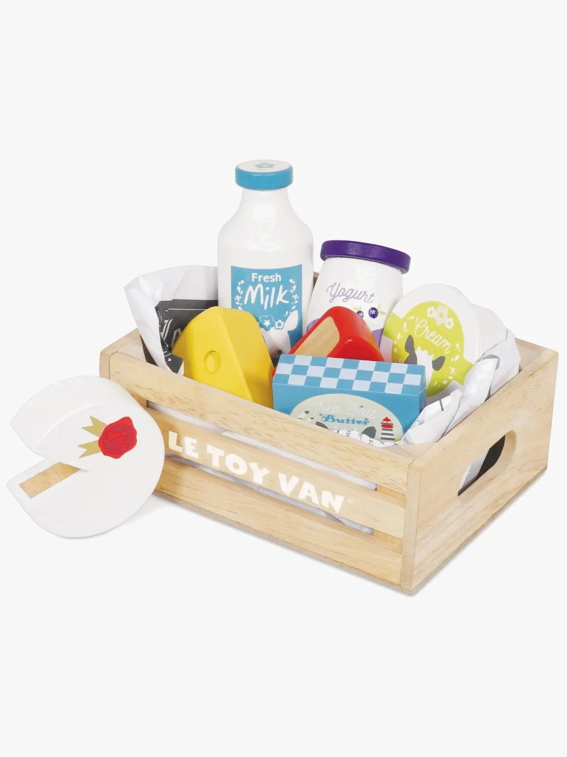 – Indeholder: 1 mælkekarton, 1 yoghurt, 1 fløde, 1 smør, 3 oste.