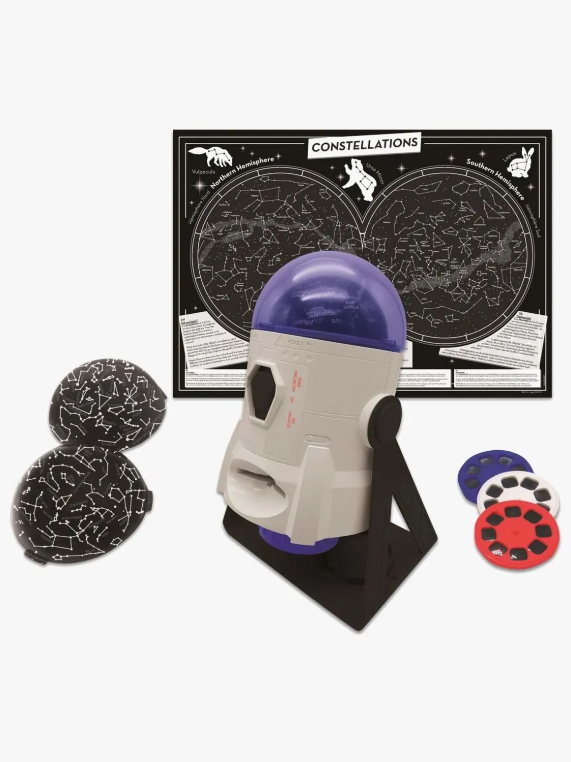 – Indeholder: 2 konstellationskupler, 1 projektor, 3 skiver, 1 brugsvejledning, 1 rumhæfte.