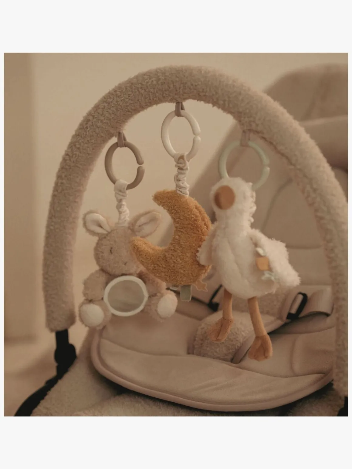 – Legetøjet har forskellige raslende materialer, der er perfekte for små hænder at føle på og trække i.