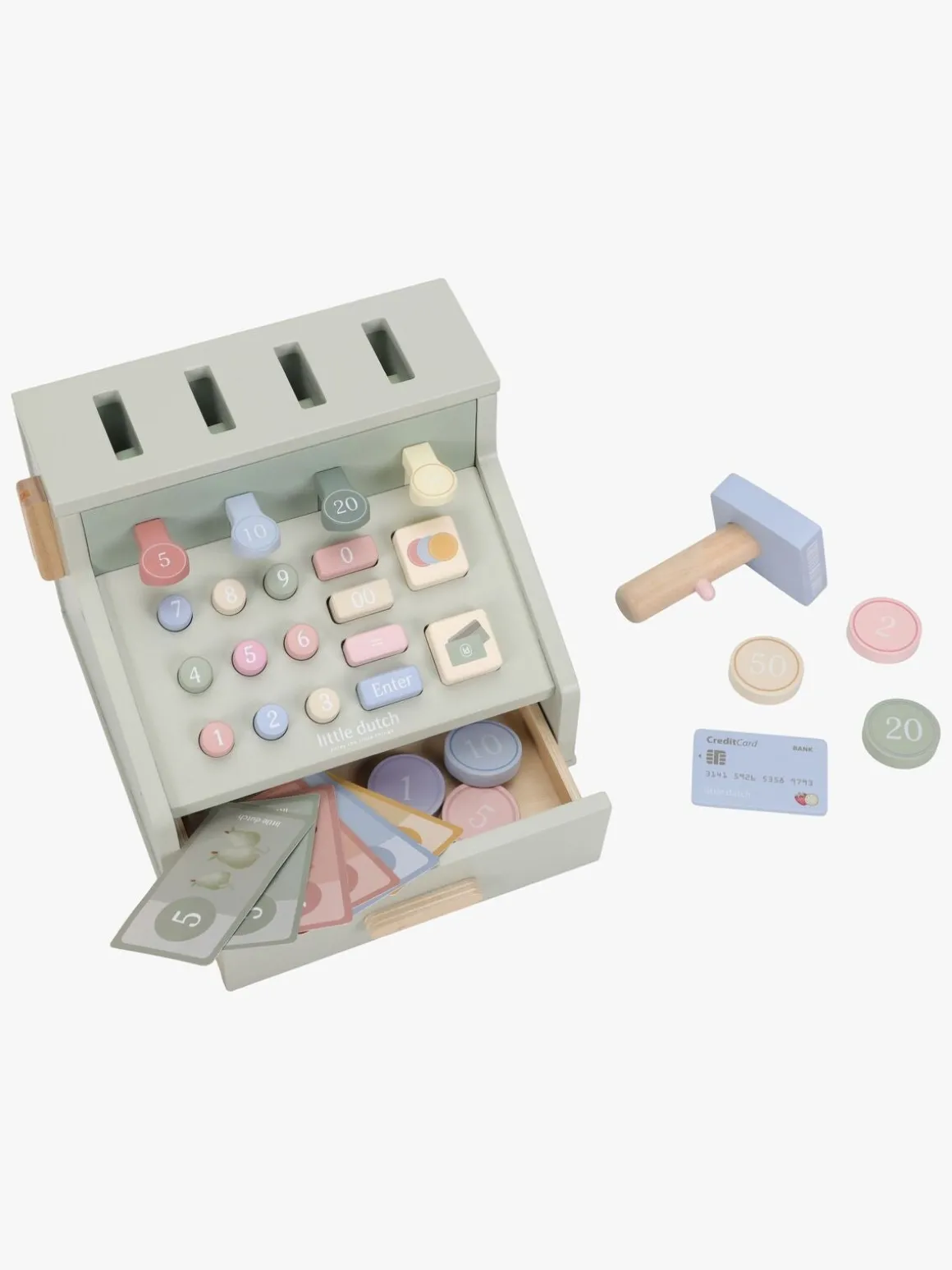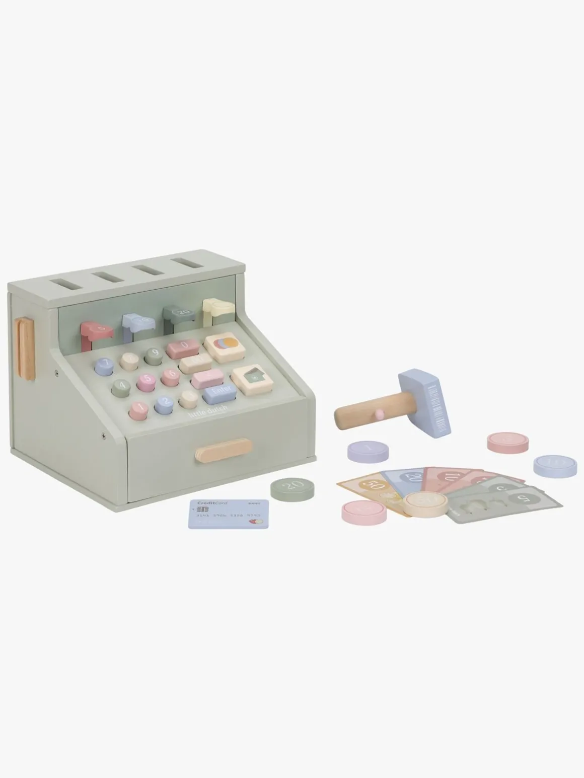 – Indeholder: 1 kasseapparat, 1 scanner, 1 kreditkort, 1 sæt med legetøjspenge.