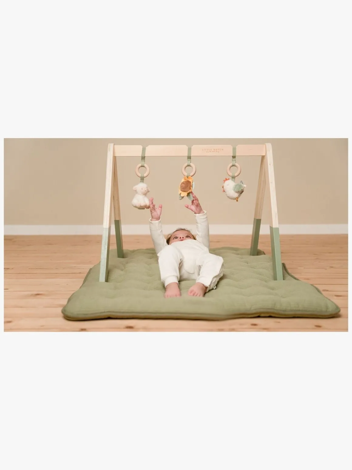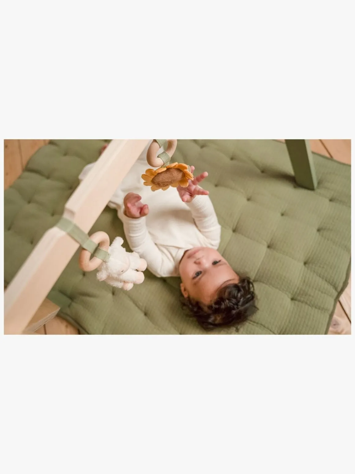 – Advarsler: For at forhindre mulige skader pga. sammenfiltring skal du fjerne dette legetøj, når barnet begynder at forsøge at komme op på hænder og knæ.
