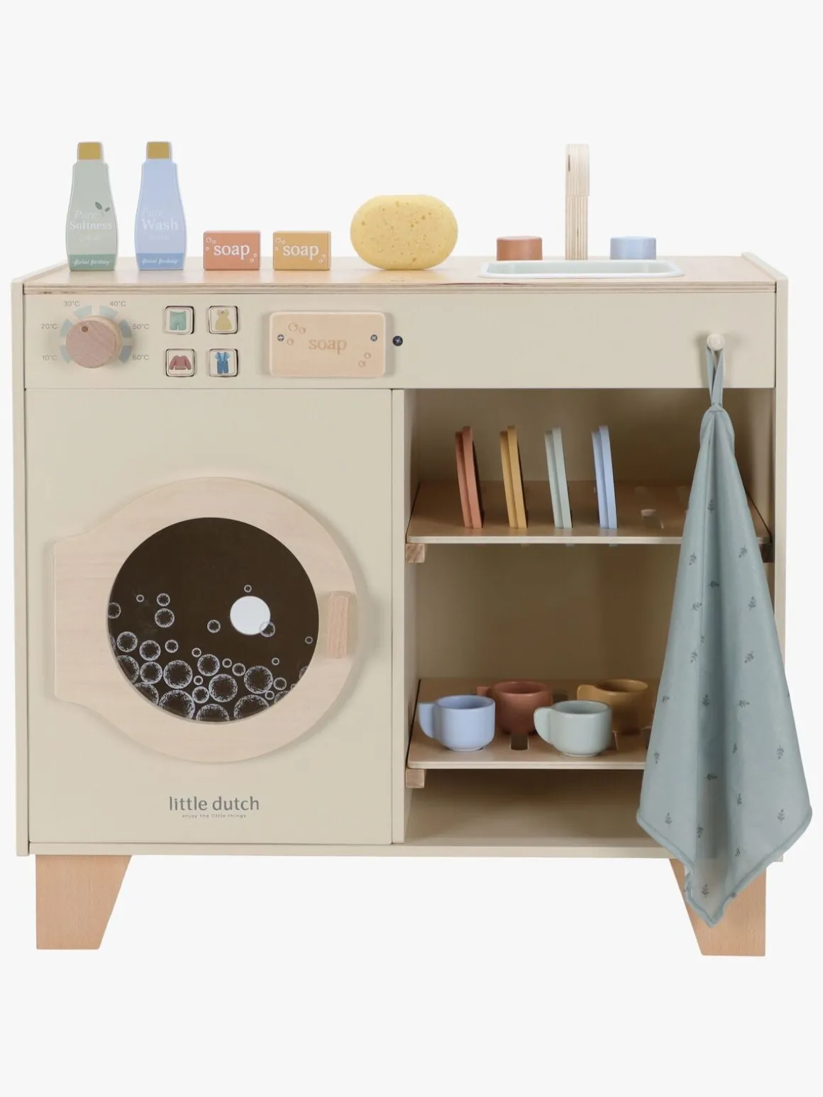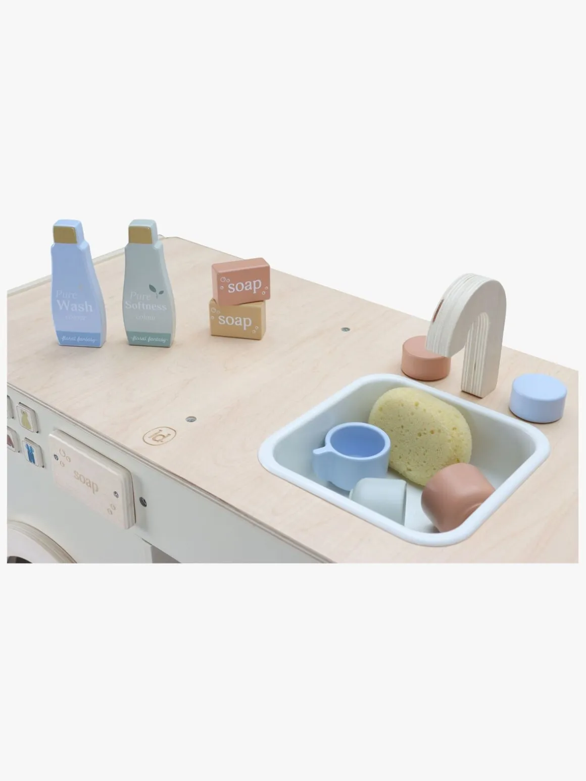 – Indeholder: 1 vaskemaskine, 4 tallerkener, 4 kopper, 1 håndklæde, 1 svamp, 4 sæber.