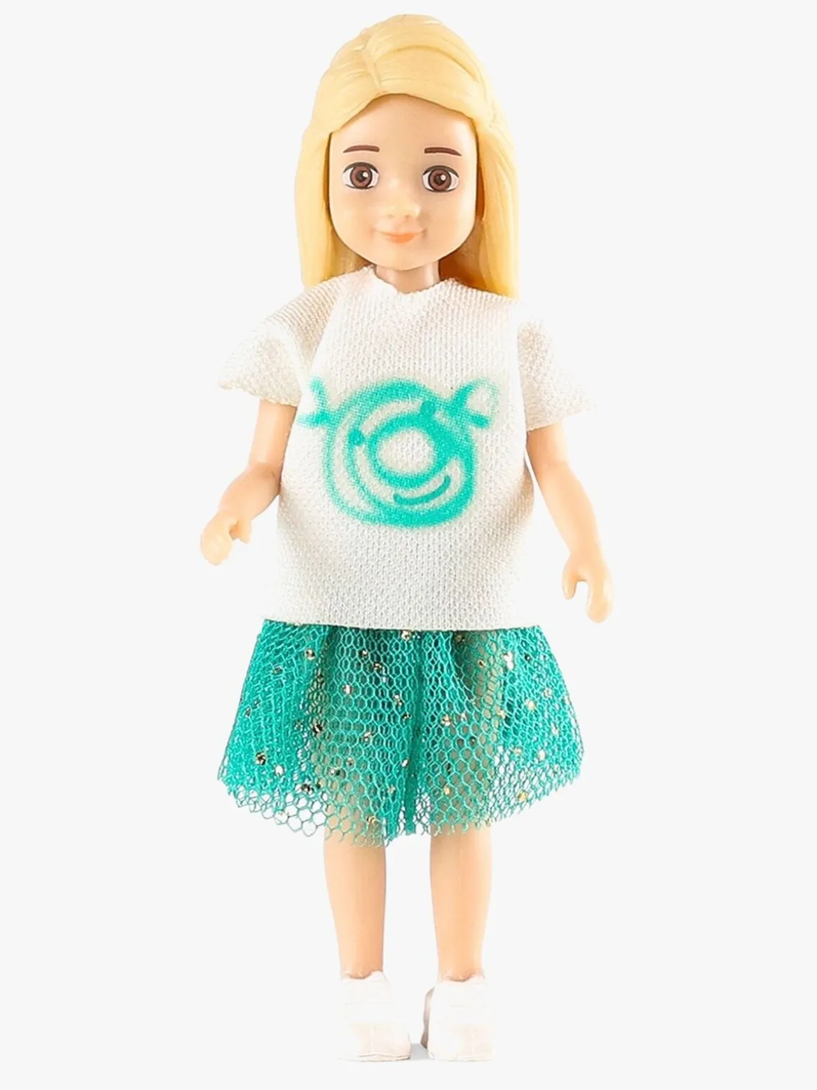 – Dukken kommer med tre forskellige frisurer, kjole, hue, t-shirt, nederdel og shorts.