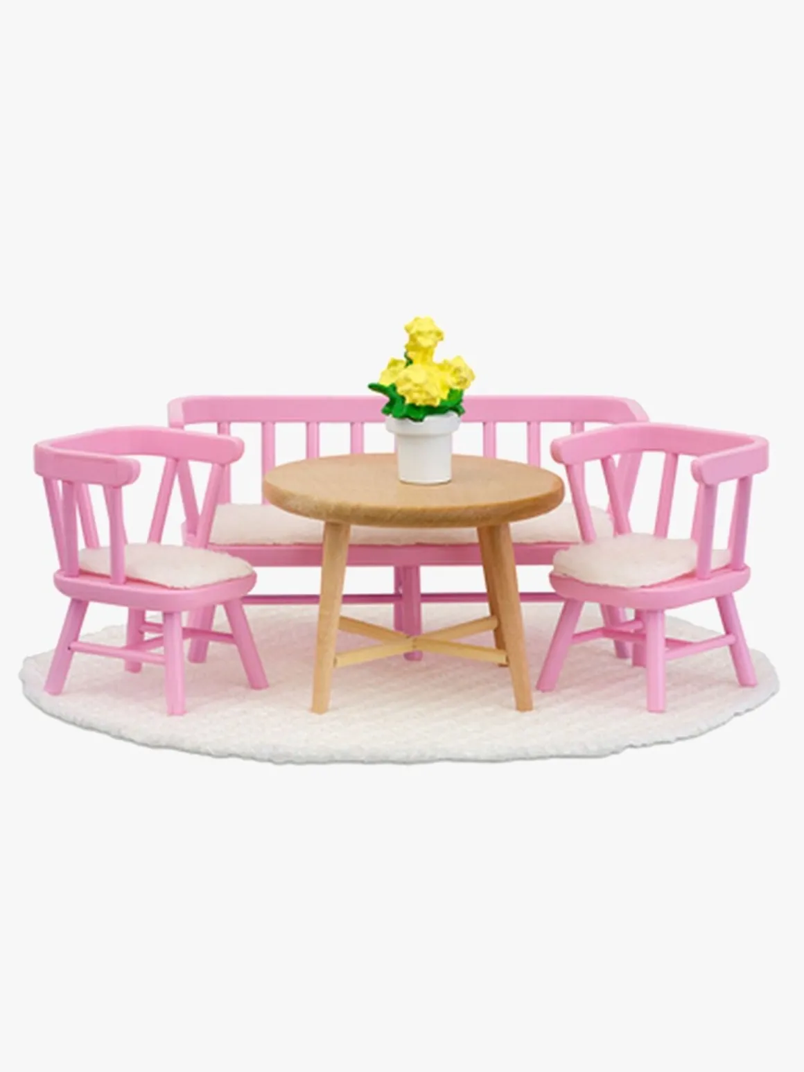Desuden medfølger et lille gulvtæppe og en blomst, som kan pynte på bordet.