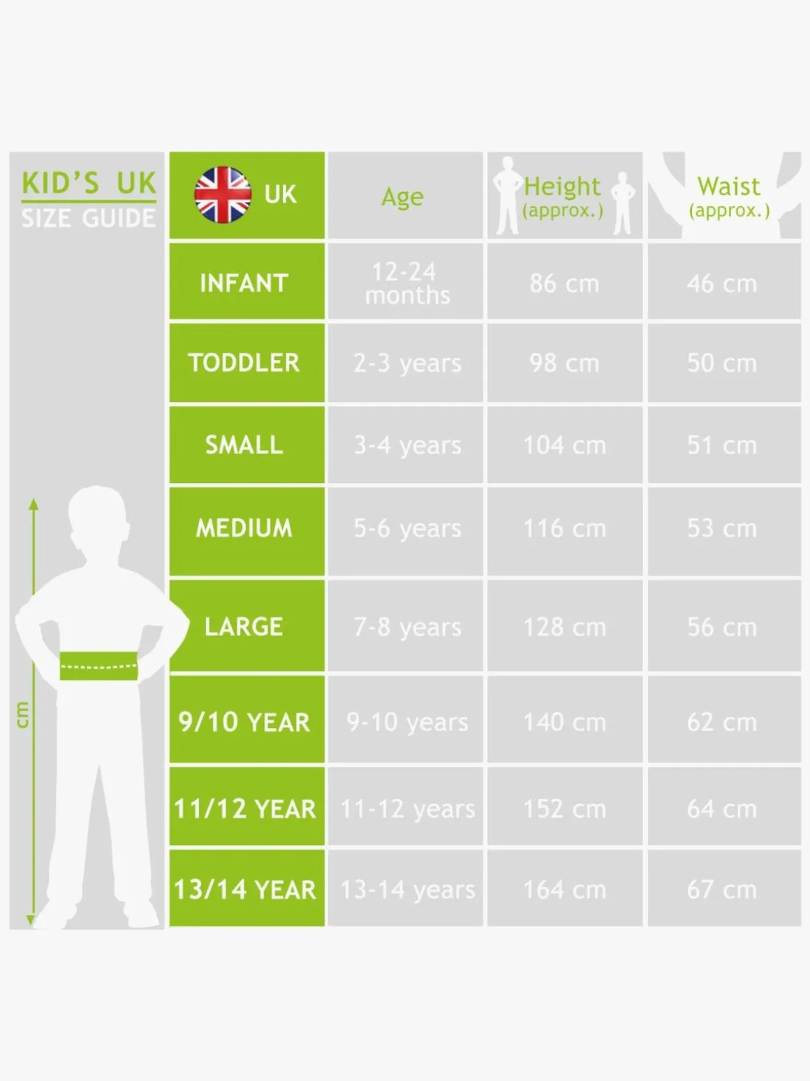 | Øvrige mål | Størrelsesguide: 2–3 år: 98 3–4 år: 104 5–6 år: 116 7–8 år: 128 9–10 år: 140 |