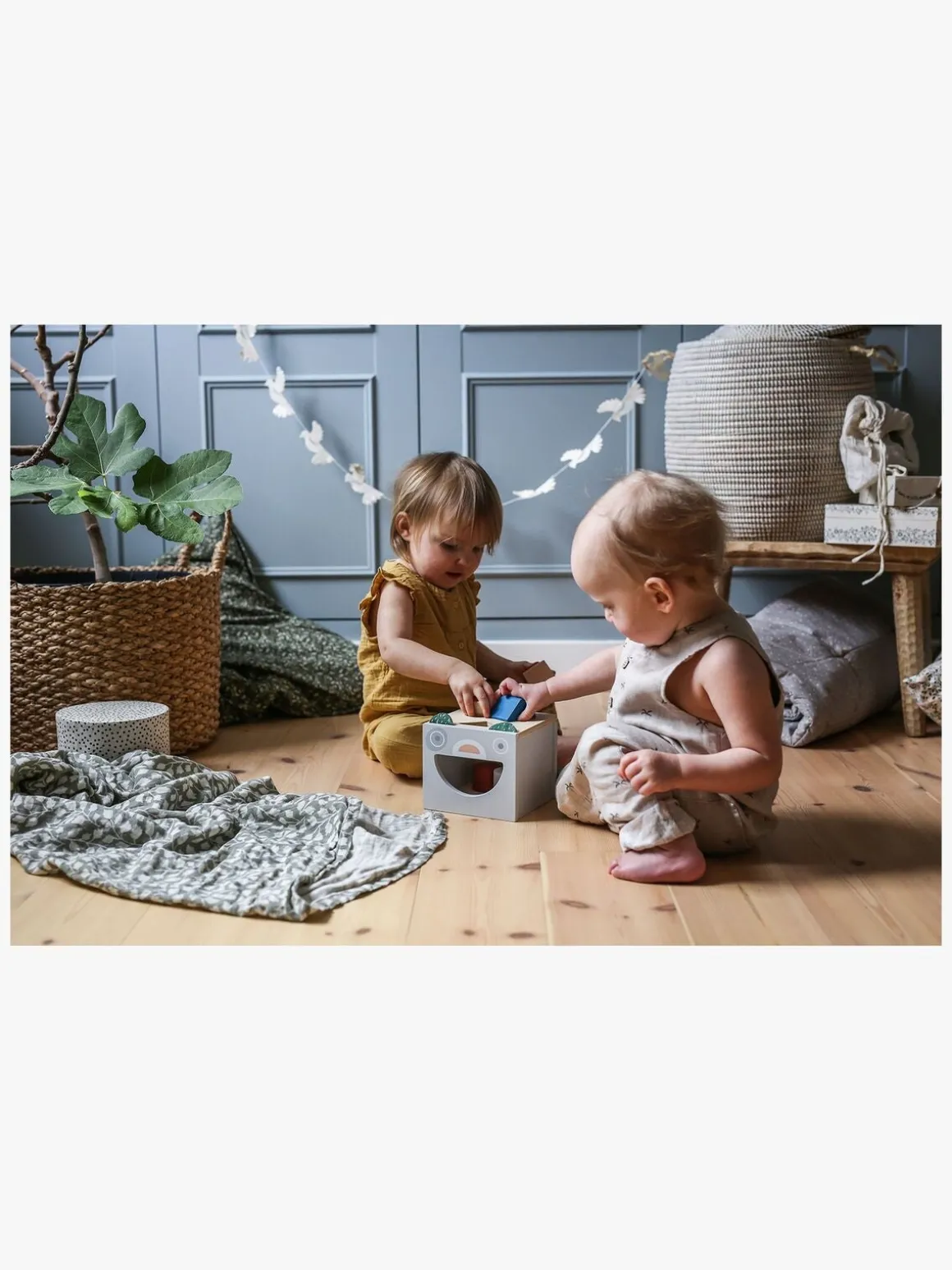 En puttekasse er ikke bare sjov at lege med, men udvikler desuden dit barns motorik og sanser. Til kassen medfølger seks træklodser i tre forskellige former.