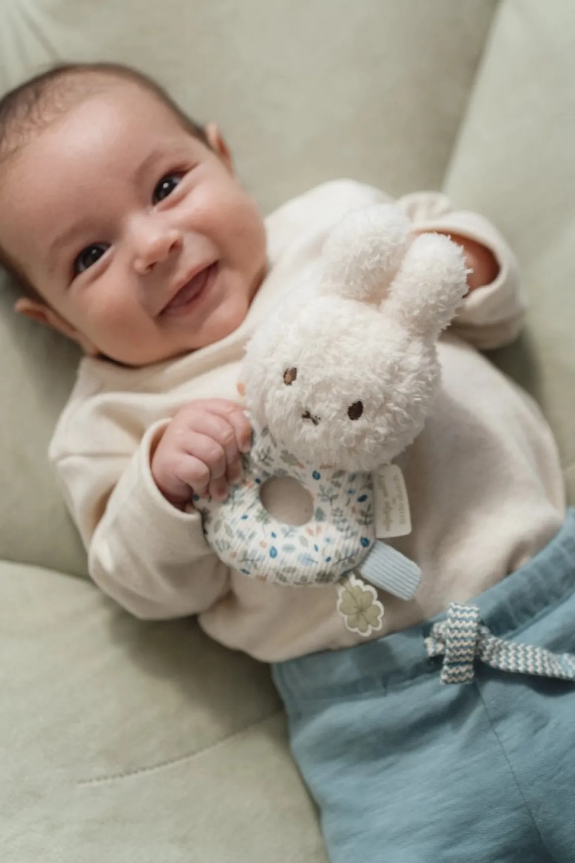 Blød rangle fra Miffy x Little Dutch. Perfekt til opmuntring af de sensoriske og finmotoriske færdigheder.