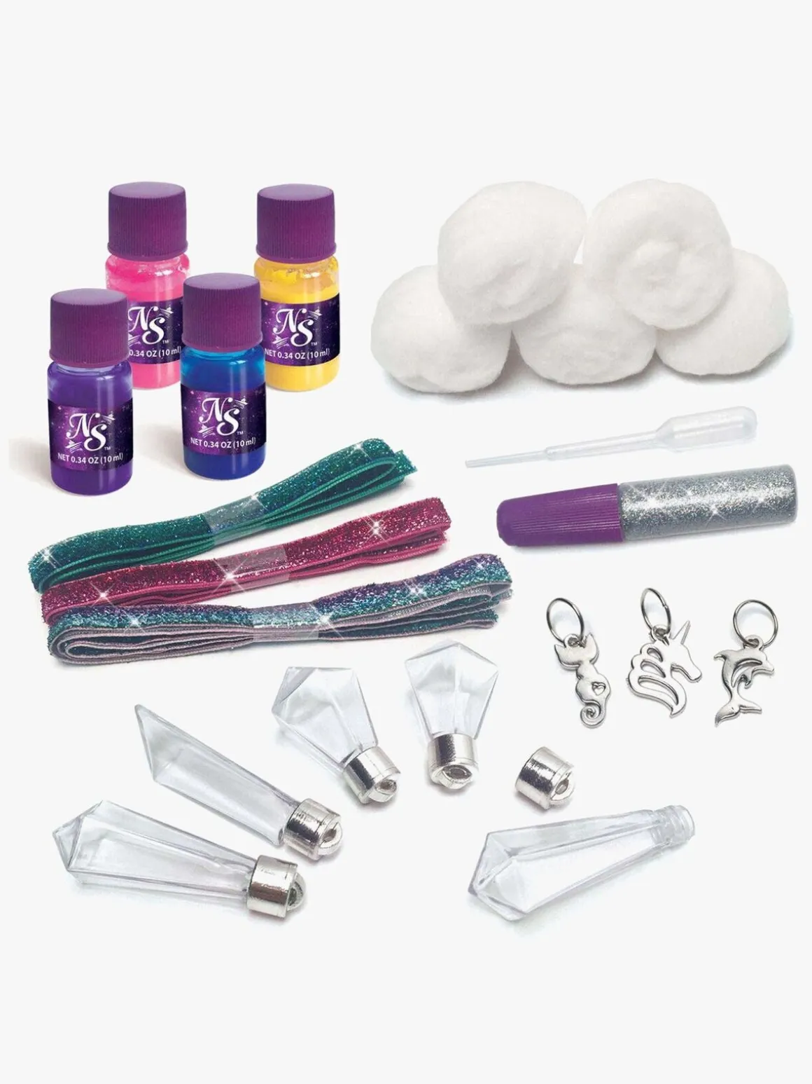 – Indeholder: 5 krystalflasker, 4 blækflasker, 3 vedhæng, 1 glittertube, 3 glitterbånd, 5 vatrondeller, 1 pipette.