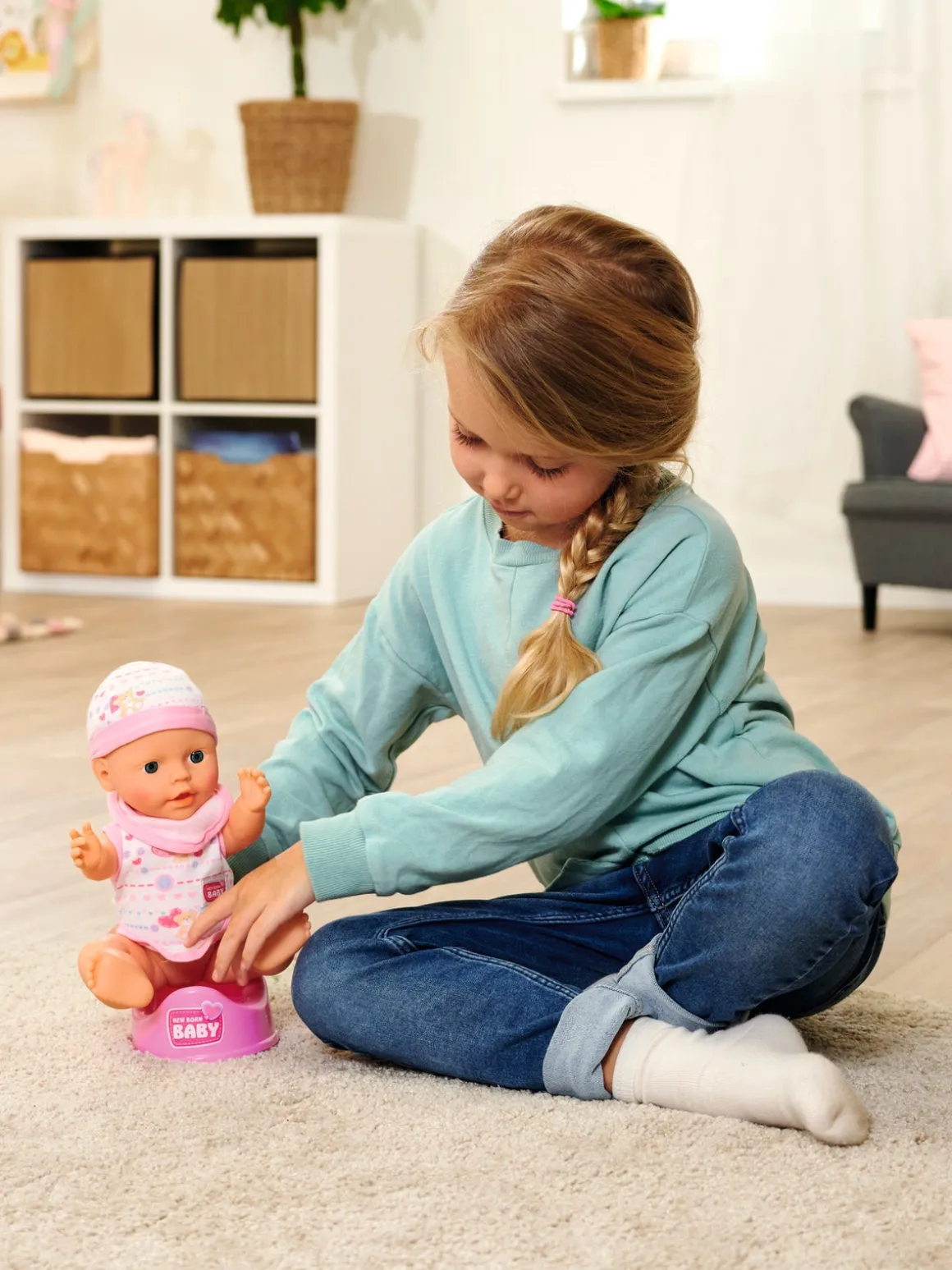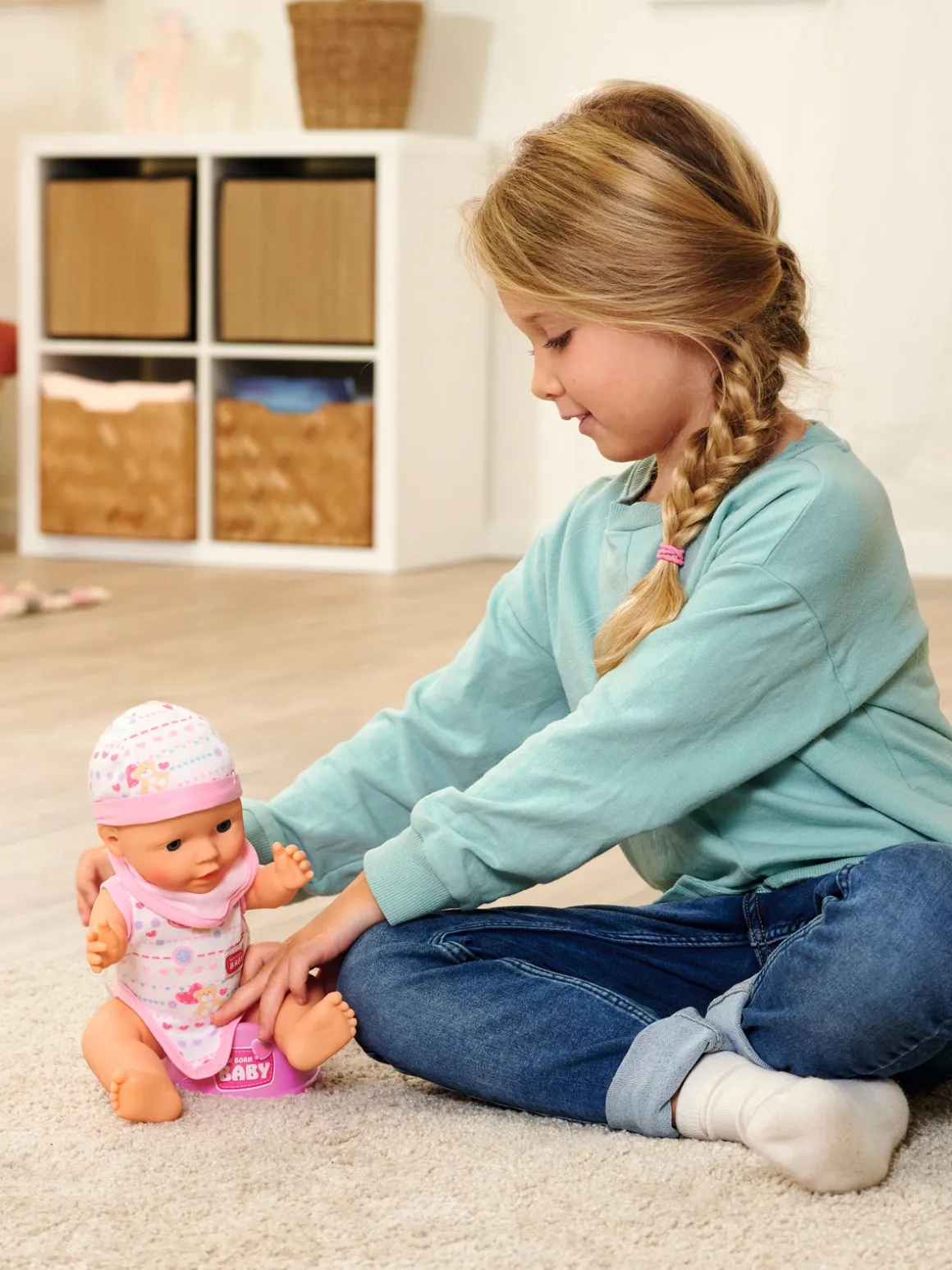 – Indeholder: 1 dukke, 1 hagesmæk, 1 sutteflaske, 1 sut, 1 potte.