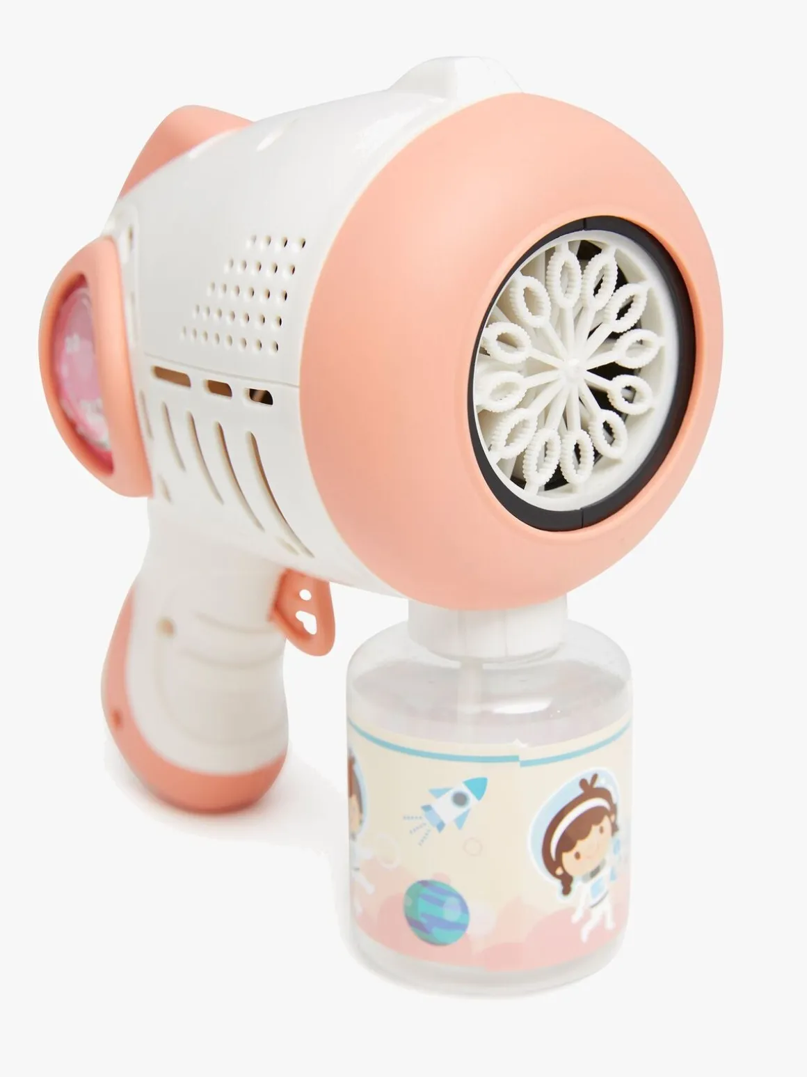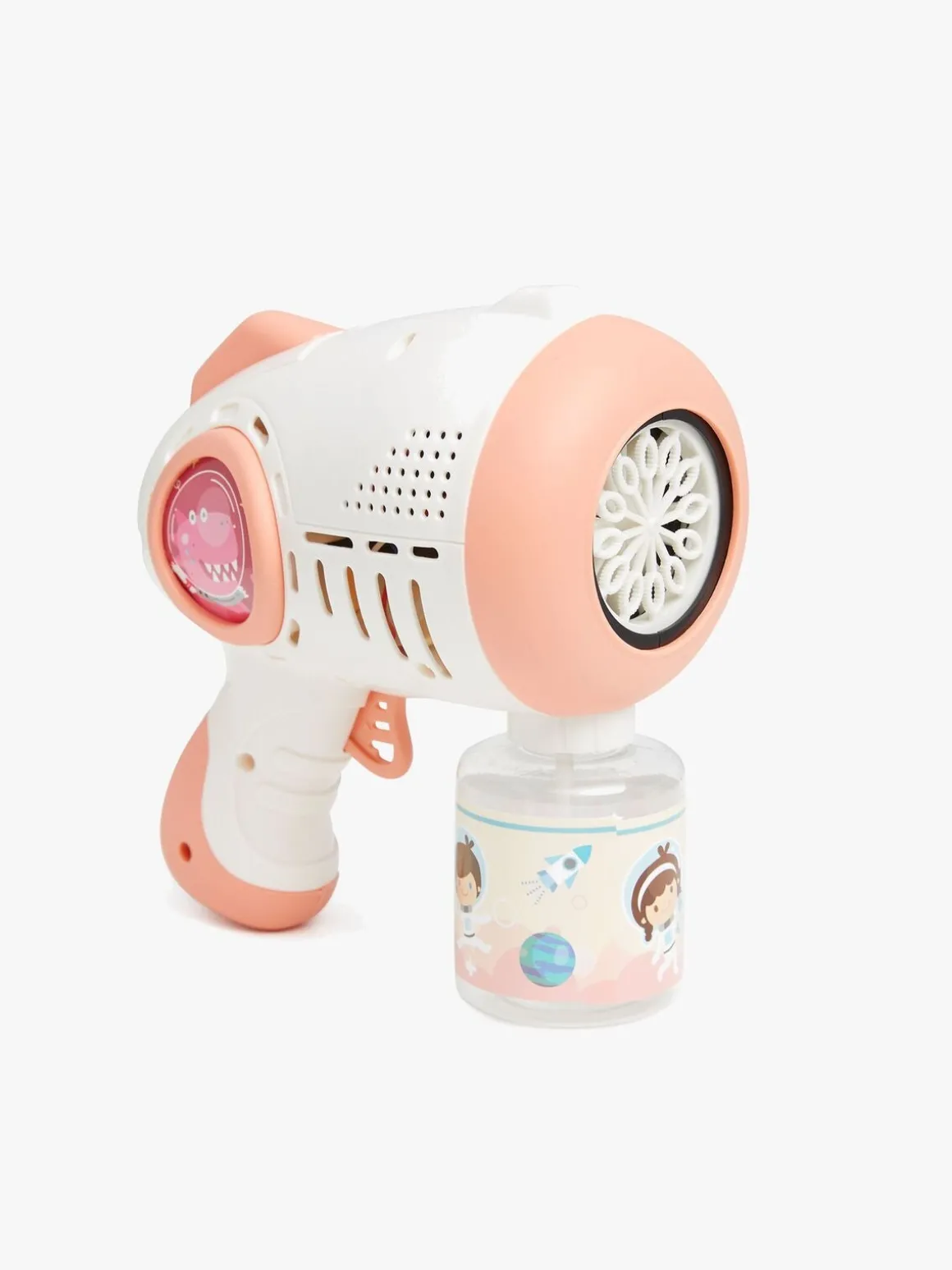 – Indeholder en sæbeboblepistol og en sæbebobleflaske.