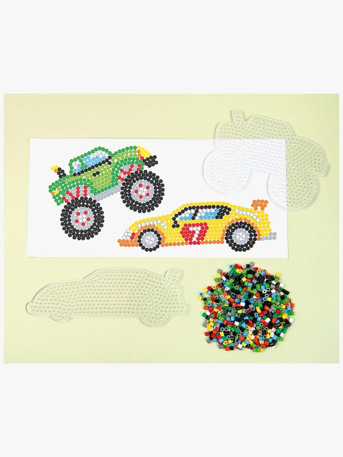 – Indeholder: 2000 perler, 2 perleplader, 2 figurskabeloner.