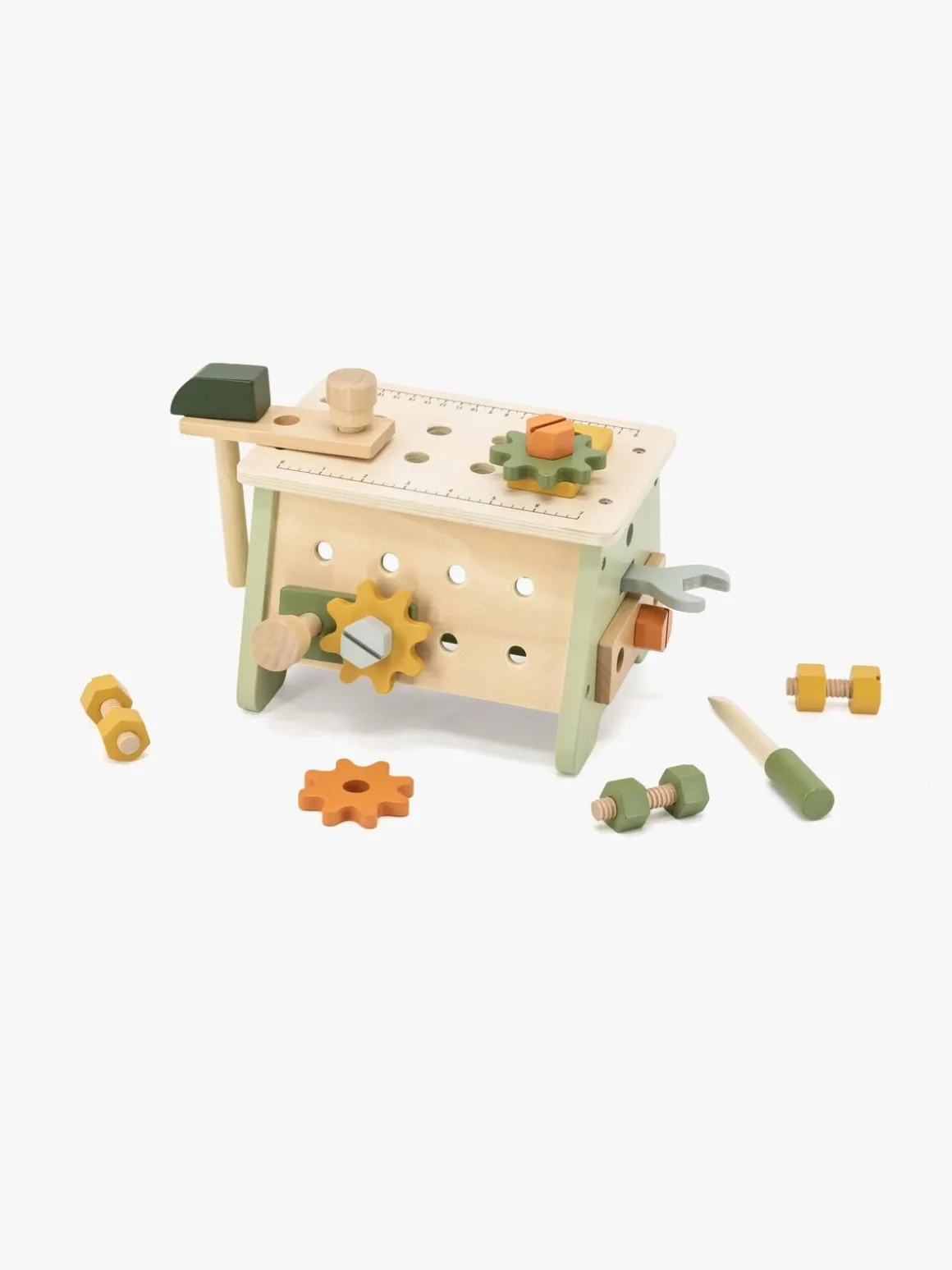 – Indeholder: 1 hammer, 1 skruetrækker, 1 skruenøgle, 3 tandhjul, 5 byggeklodser, 10 møtrikker.