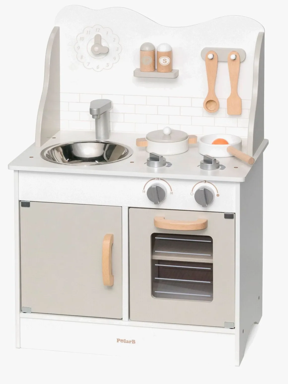 – Indeholder: 1 legekøkken, 1 stegepande, 1 spejlæg, 1 salatskål, 1 peberkværn, 1 gryde, 1 paletkniv, 1 grydeske.