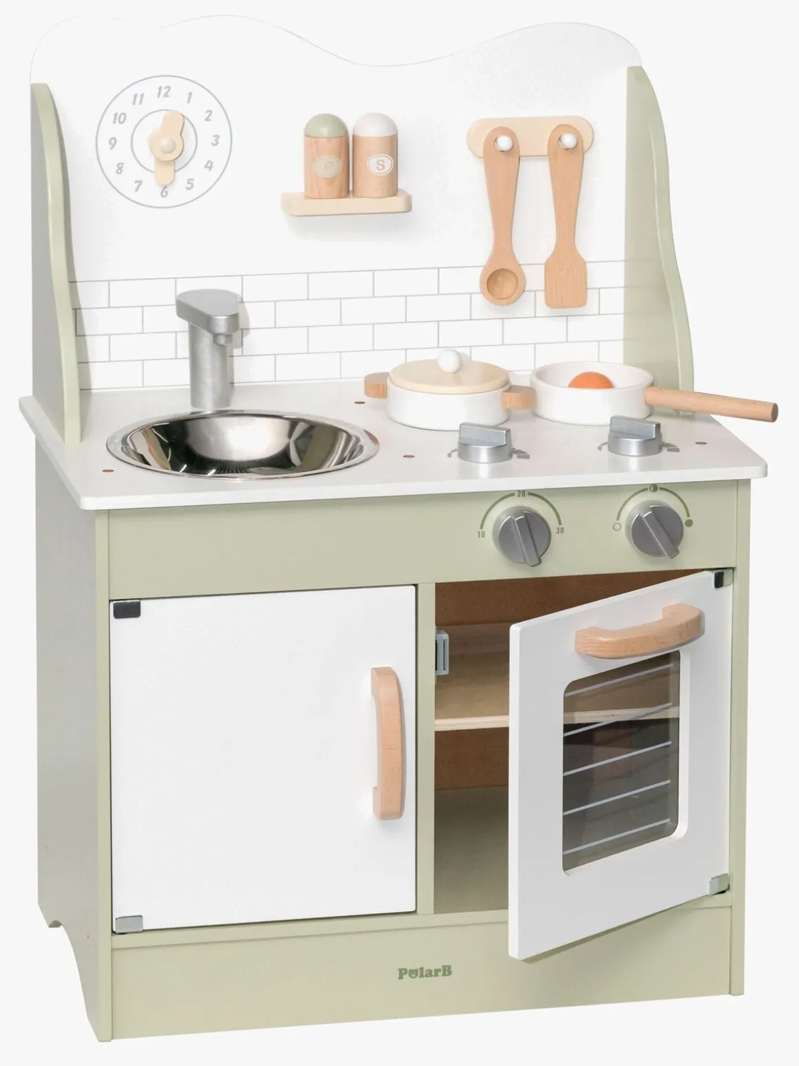 – Indeholder: 1 legekøkken, 1 stegepande, 1 gryde med et låg, 1 paletkniv, 1 grydeske, 1 salt- og pebersæt, 1 spejlæg.