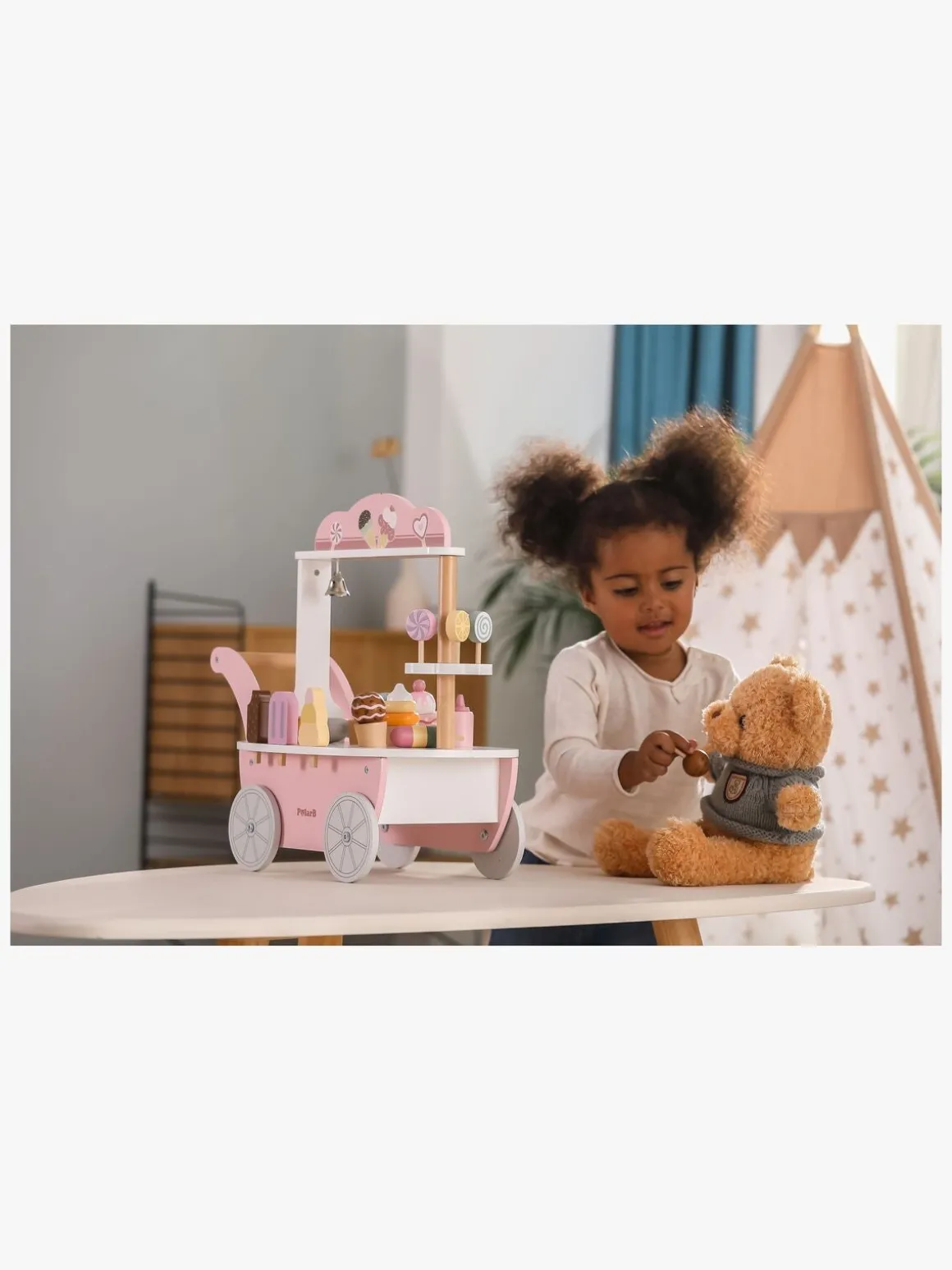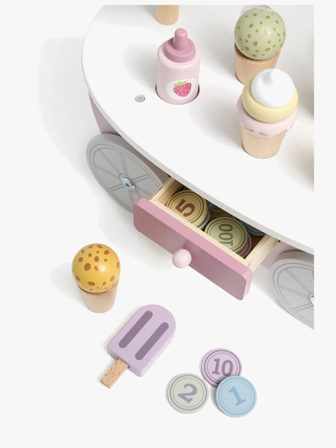 – Indeholder: 1 iskiosk, 9 is, 5 slikkepinde, 1 skovl, 20 mønter.