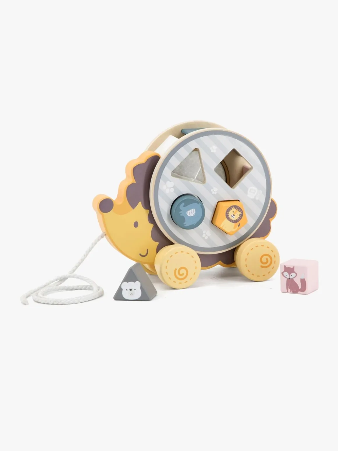 – Indeholder: 1 træklegetøj, 1 puttekasse, 4 klodser.