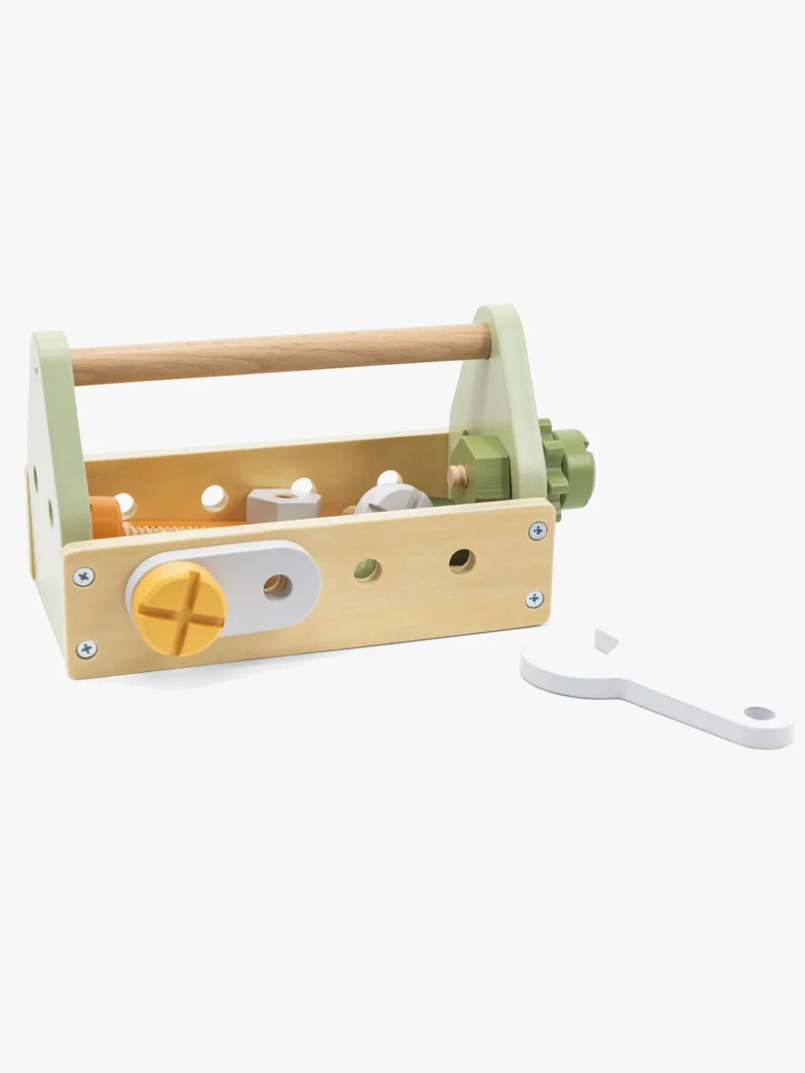 – Indeholder: 1 værktøjskasse, 1 hammer, 1 skruetrækker, 1 skruenøgle, 5 bolte, 4 møtrikker, 2 tandhjul, 2 byggeplader.