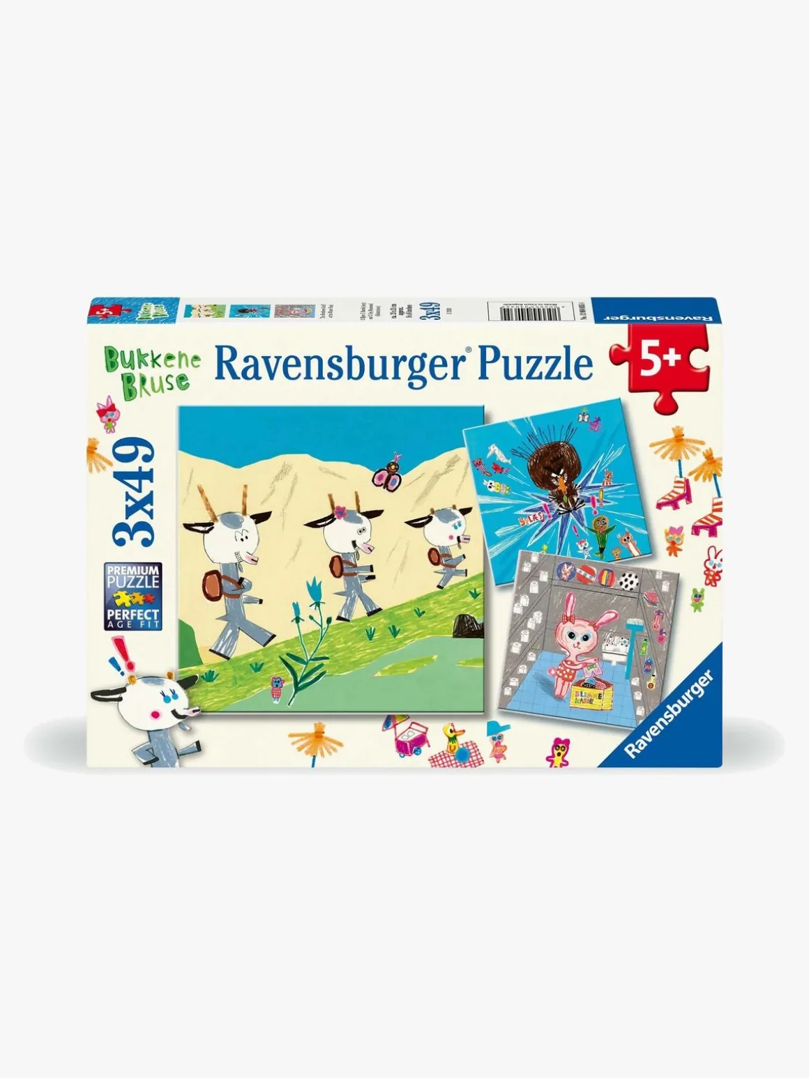 – Indeholder 3 puslespil med 49 brikker i hvert.